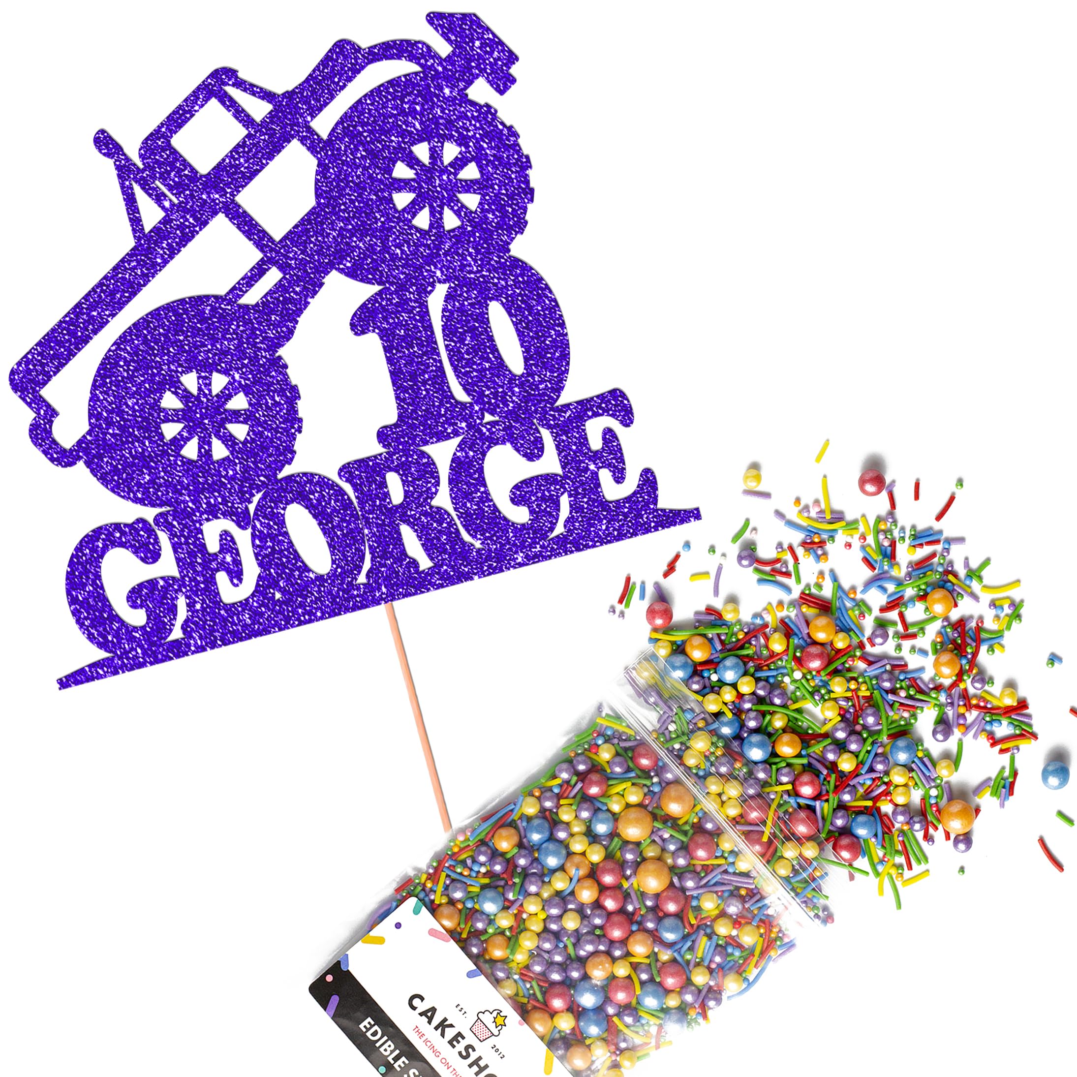 It should go without saying - but Glitter Card toppers are flamable! We therefore recommend using only Acrylic toppers alongside candles for safety. Cakeshop have been making the highest quality Cake Decorations since 2011 - we have thousands of design options available in our store for every occasion and theme (click 'visit the cakeshop store' above). After you have added your custom information in the 'Customise Now' section our designers hand make your topper in the same font, style and topper colour as the design you've selected. All 'Cakeshop Cake Decorating Packs' come beautifully packed with simple to understand instructions so that you can quickly turn any cake, home made or shop bought (we wont tell!) into the perfect cake. Choose from either Metallic or Rainbow sprinkles and upgrade to 50g packs in the 'Customise' section, so that you can match your sprinkles to your theme (or save them for next time!). Cakeshop Glitter Toppers are made from 480gsm premium double sided glitter card, select which colour topper you'd like then click 'Customise' to add your text personalisation and choose your sprinkles. Toppers make a great keepsake to remember this special occasion forever, often our customers will remove the support sick and use on bedroom doors (until their next birthday!). Size: Sprinkles pack (perfect for a large cake) 25g, you can also upgrade to a 50g pack when customising your topper | Glitter Topper Approx 152mm (6") x 175mm (7"). Cakeshop Sprinkles are Vegan, Gluten Free, Lactose free and Nut Free, all while looking amazing in striking colours and an assortment of sizes for a truly 'premium' finish. This Cakeshop Cake Decorating Pack includes 1 x 480gsm Double Sided Glitter Card Topper & 25g Cake Sprinkles (option to upgrade to 50g while customising) - perfect for your party or celebration!.