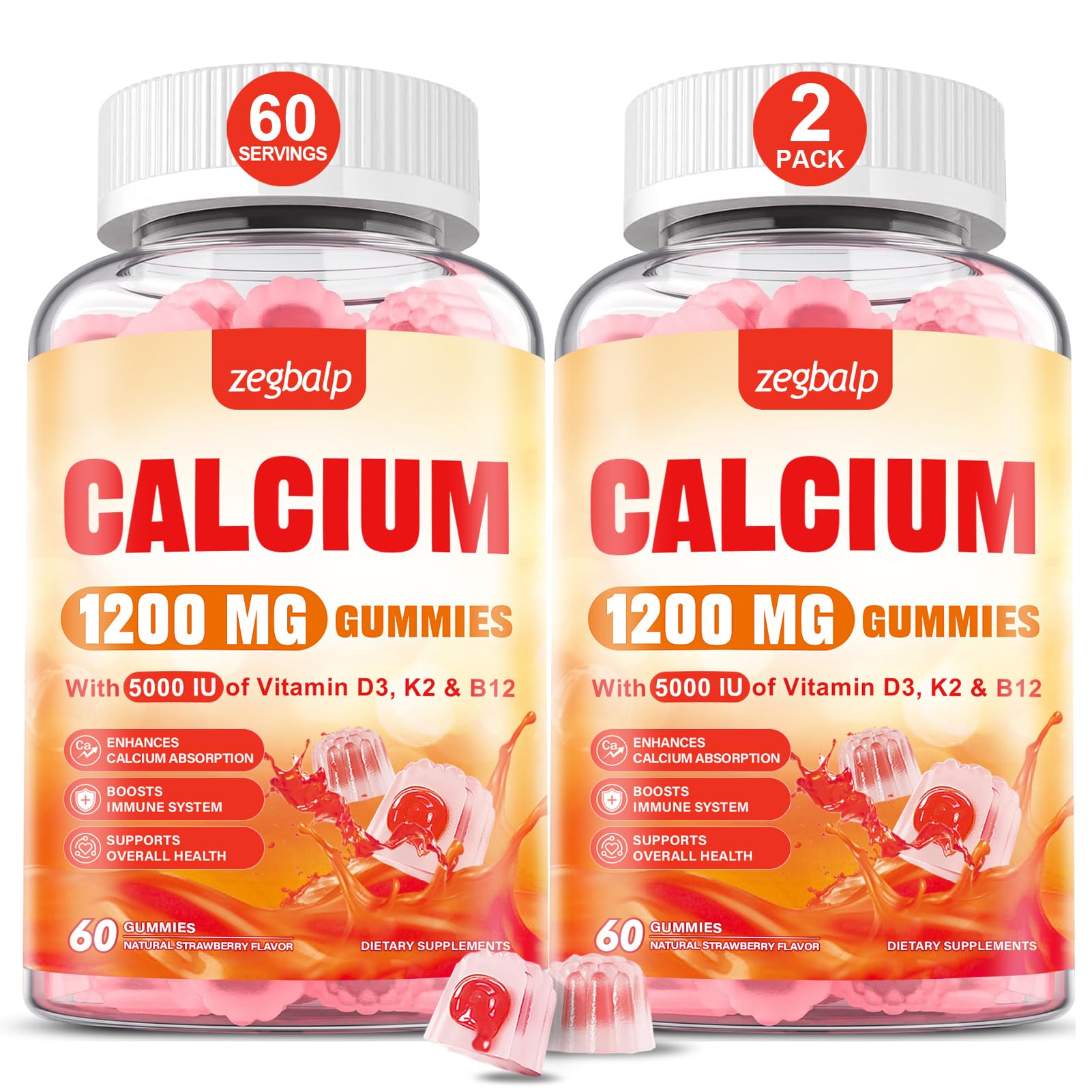 TRUSTED SOURCE AND QUALITY: Our delicious calcium citrate gummies are a healthy choice for both women and men. It's premium ingredients do not contain GMOs, gluten, gelatin, artificial colors, flavors or preservatives, making it EASY TO D IGEST and NOT BURDEN on your body. Each gummy is certified by GMPs and rigorous third-party testing to ensure the accuracy of the purity,potency and safety. If you have any questions about our products, please contact us promptly. MEET DAILY NEEDS AND HEALTH: Daily calcium supplements has never been easier and more comprehensive. Our calcium citrate with vitamin d3 gummies contain the necessary calcium citrate for smooth body movements. B12 helps maintaining your body's message transmission and promotes energy levels. D3 helps regulate immune function and enhance resistance. Our gummies are not only a source of calcium, but also provide essential nutrients, making them an important choice for achieving overall health. D3 K2 FOR ENHANCED CALCIUM ABSORPTION: The synergy between Vitamin D3 and K2 ensures optimal calcium absorption and utilization. D3 boosts calcium absorption rate in the intestine and aids in reducing calcium loss. K2 guides calcium to your body's key structural areas where it's needed most and balances calcium distribution. These nutrients in our calcium gummies ensure calcium is properly absorbed and utilized,support core structural strength. 5X ABSORPTION RATE FILLED GUMMIES: Our calcium 1200 mg with vitamin d3 gummies use advanced filled technology to encapsulates active ingredients in the core, while the outer pectin layer protect them from degradation, maintaining effectiveness, offering 5X more absorption and higher bioavailability compared to regular gummies. These calcium gummies feature NATURAL STRAWBERRY FLAVOR EXPLOSION, sweetened with MONK FRUIT for SUGAR-FREE, made with vegan pectin,are rich texture and easy to chew. POTENT CHELATED CALCIUM FORMULA : Our calcium supplements for women and men deliver 1200 mg of high-dose Calcium Citrate, offering superior absorption to boost Ca levels in adults. This chelated form is gentler on the stomach and more bioavailable than calcium carbonate. Each gummy is enriched with D3 K2 for enhanced Ca absorption and utilization, supporting strong body structure,and B12 for energy boosting. Take 2 gummies daily to experience the benefits of our expertly crafted formula.