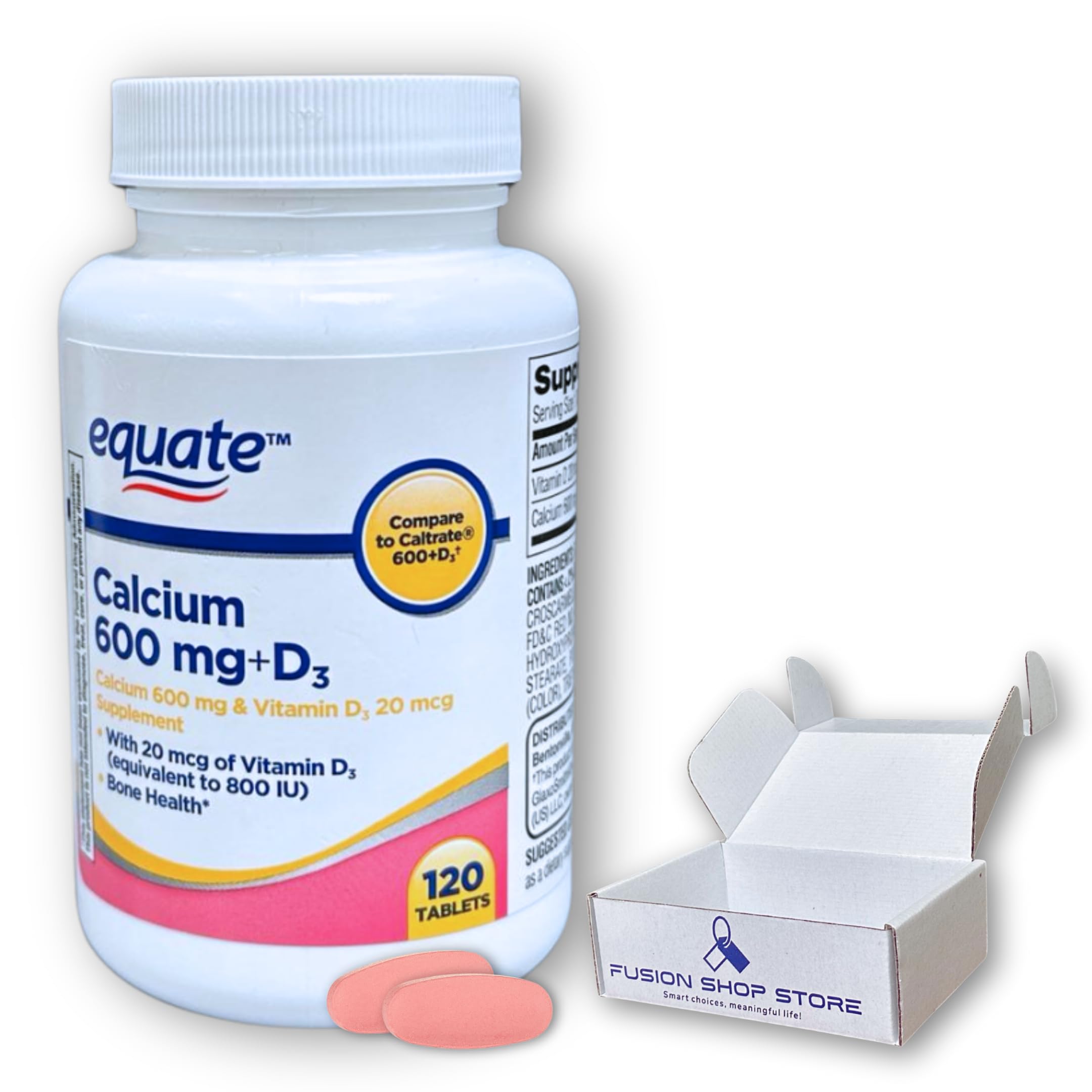 Calcium 600 mg with Vitamin D3- Tablets 120 Count (Pack of 1) Boxed by Fusion Shop Store