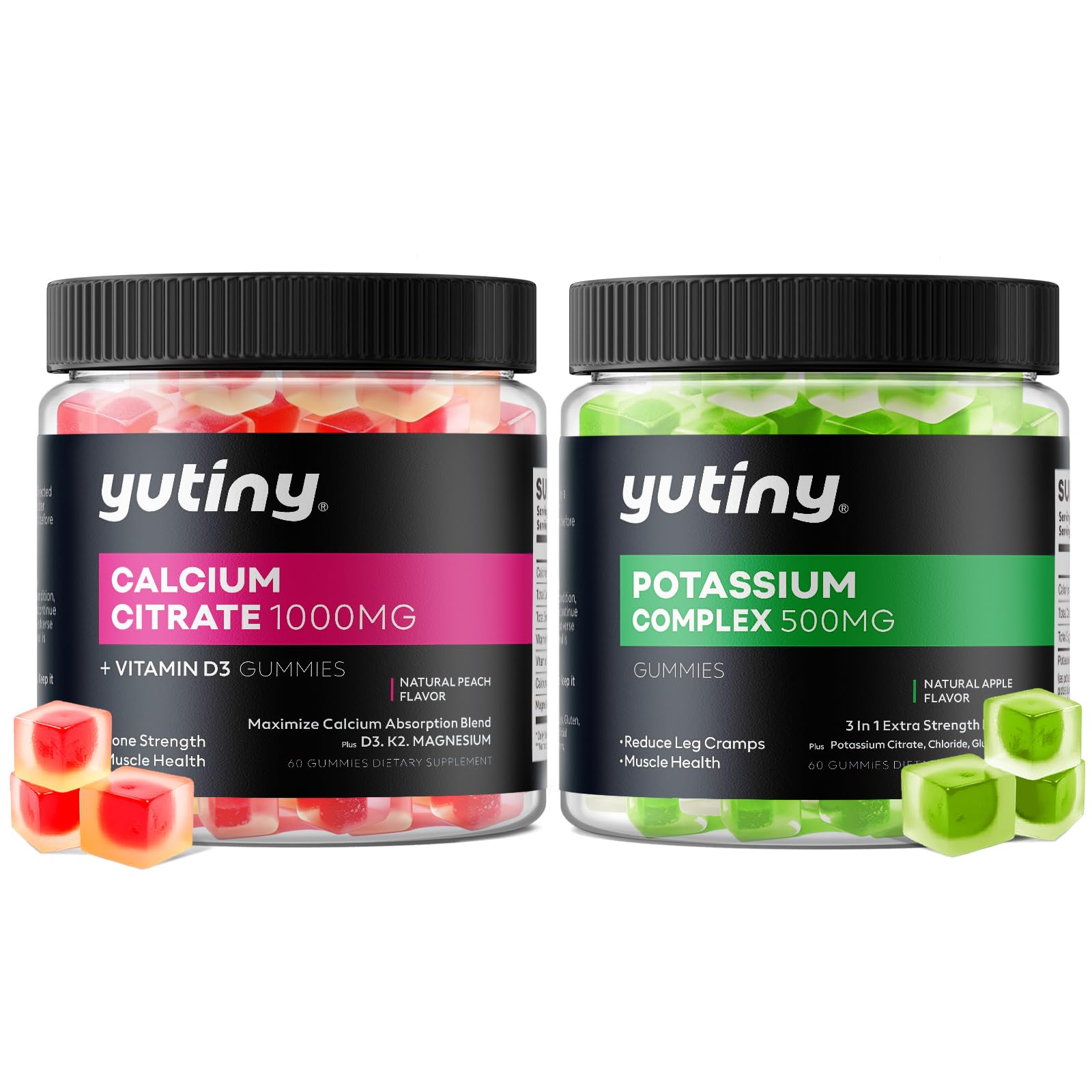 Quality Trusted: All gummies for adults are vegan, pectin-based, non-GMO, gluten-free, and manufactured in a GMP-certified facility. 3 In 1 Extra Strength Blend: The New formula makes Yutiny potassium chewables unique. Only 1 potassium gummy contains 3 forms of potassium: potassium citrate, potassium chloride and potassium gluconate. Maximize Calcium Absorption Blend: This powerful formula is carefully crafted by the Yutiny team to deliver maximum calcium absorption. 1000mg calcium citrate, vitamin d3, K2, and magnesium help your body absorb better and get enough calcium. Yutiny Liquid-Filled Potassium Gummies: Yutiny adopts advanced filling technology, and locks the nutrients in the center of gummies. 500mg potassium in 1 gummy, More stability and better absorption than normal gummies. Liquid-Filled Calcium Citrate Gummies: Enjoy the burst of natural fruit juice and bring to life the benefits of these calcium citrate chewables! Yutiny team locks the nutrients in the center of gummies for more stability and better absorption.