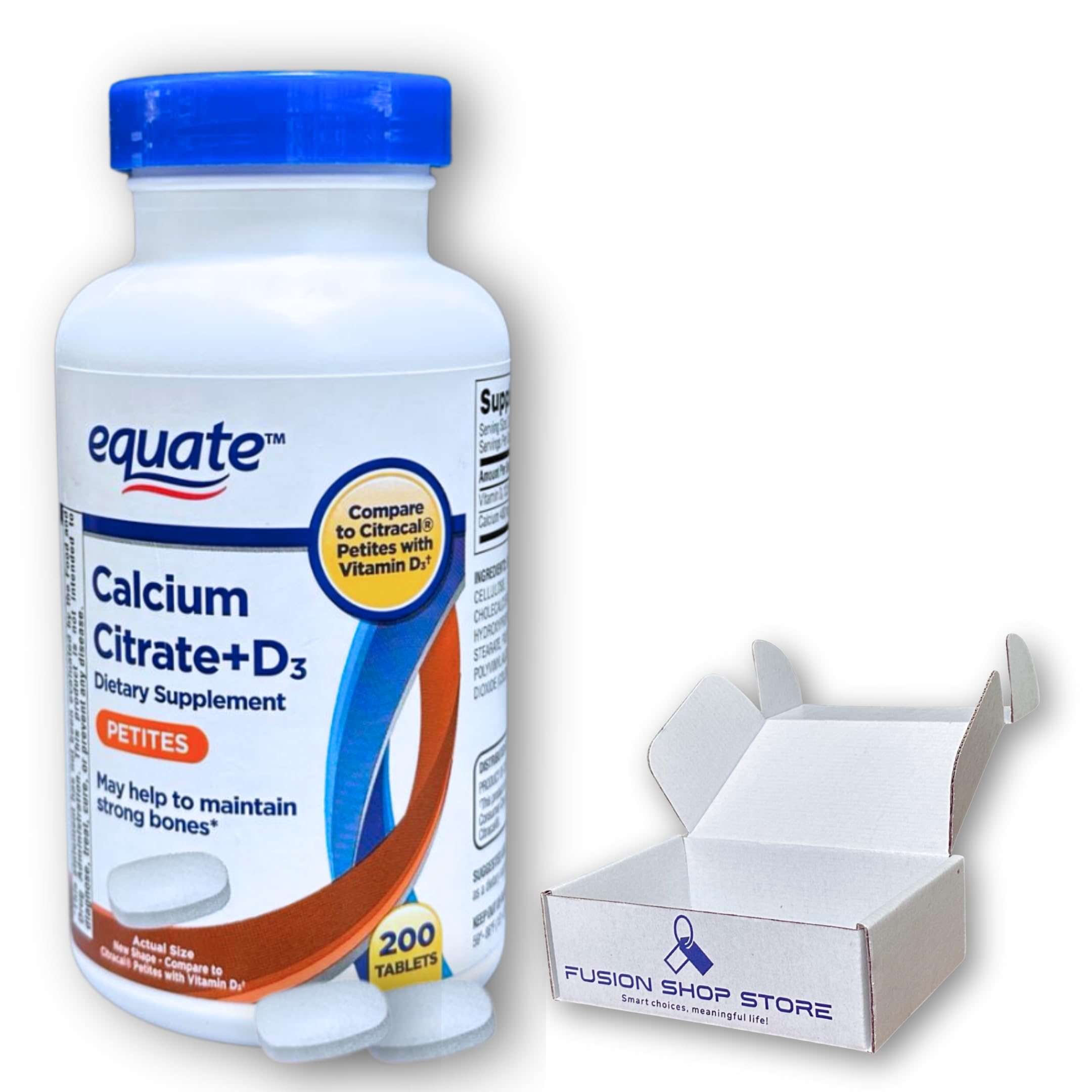 Calcium Citrate Vitamin D3- Supplement for Bone Strength and Immune Health 200 Tablets (Pack of 1) Boxed by Fusion Shop Store