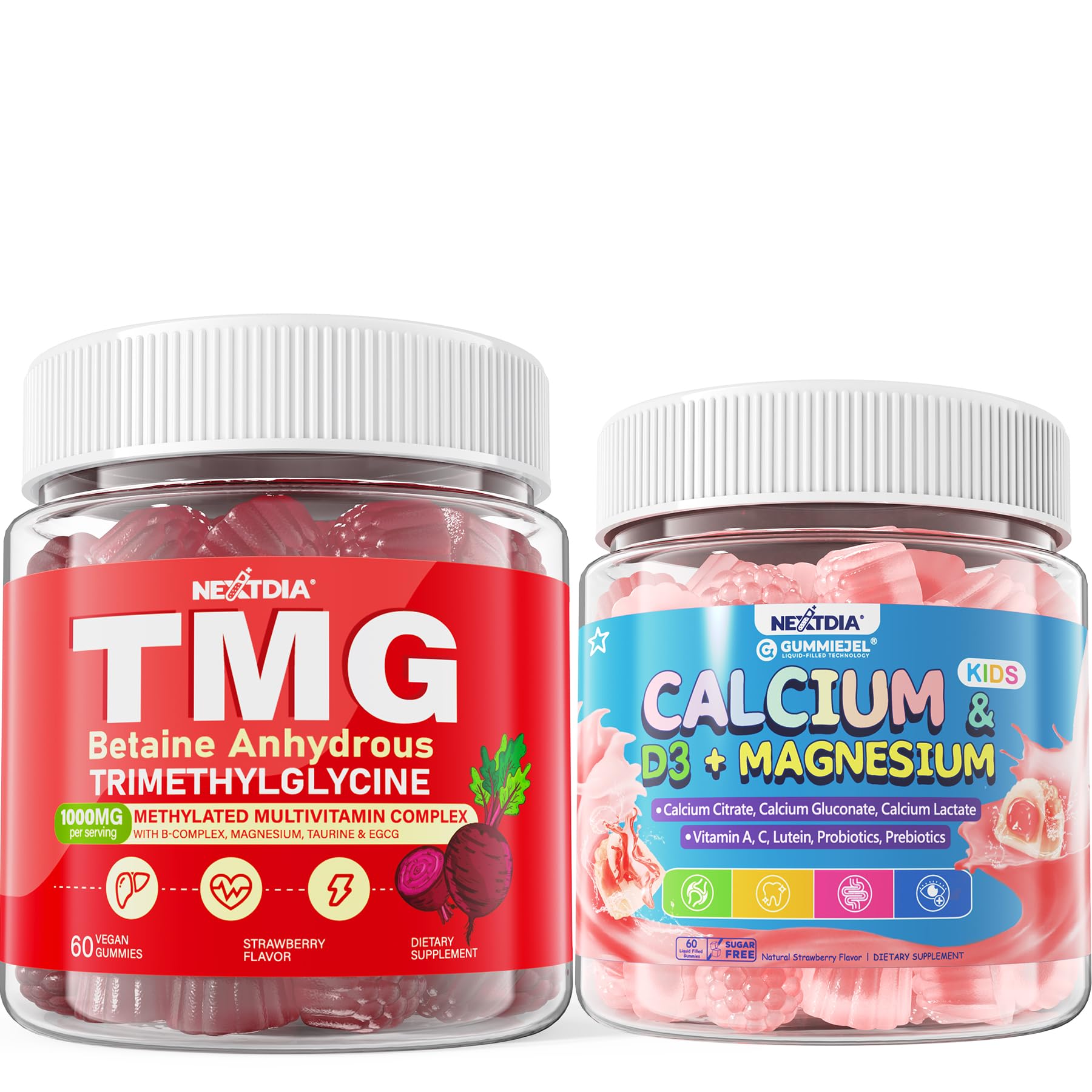 Kids Calcium Gummies D3 Magnesium for 4 , with Calcium Citrate Calcium Gluconate, Calcium Lactate,Probiotics Prebiotics, TMG Supplements Gummies 1000mg(Trimethylglycine), with Methylated B Complex, Magnesium, Taurine?Methyl b12, b6, 5-mthf, Premium Betaine Anhydrous