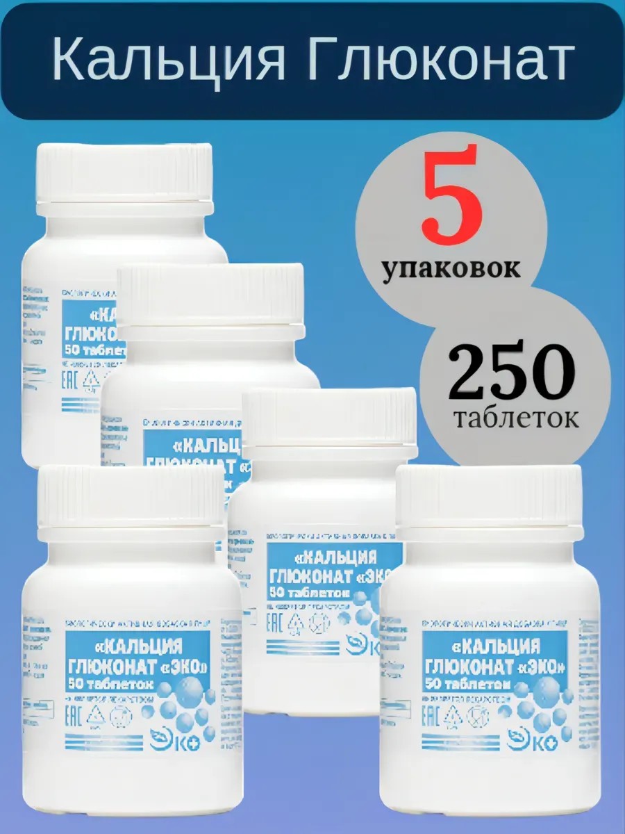 Кальция глюконат, 5 банок, 250 таблеток