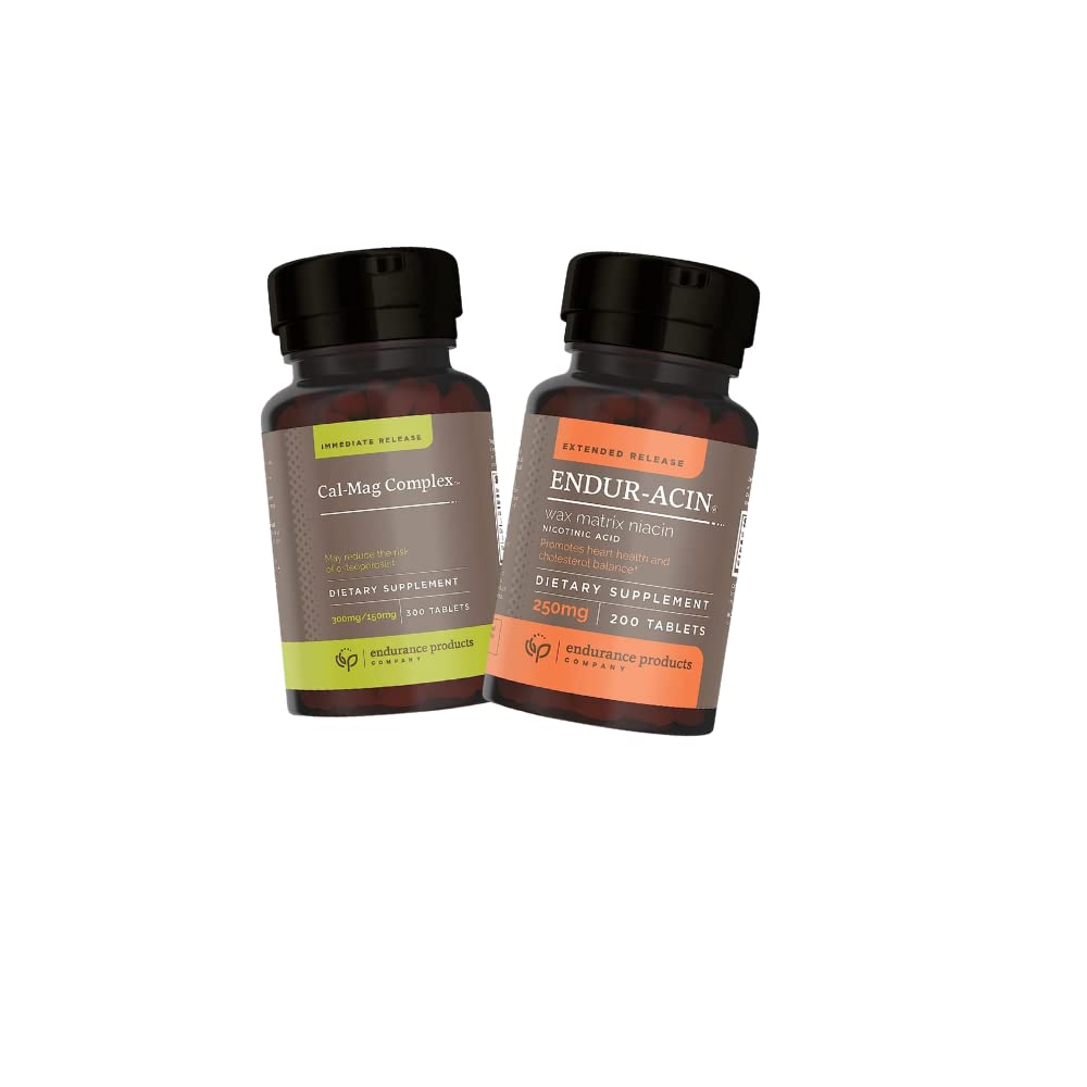 Calcium Magnesium Supplement (Cal-Mag Complex) and ENDUR-ACIN 250mg Niacin - Extended Release for Optimal Absorption & Low-Flush Vitamin B-3 200 Tablets