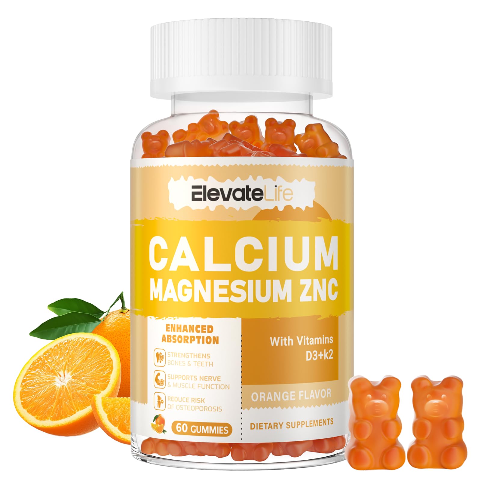 Calcium Magnesium Zinc Gummies with Vitamin D3 & K2 - High Potency Enhanced Absorption -60 Orange Gummies Flavored Orange 60 Count (Pack of 1)