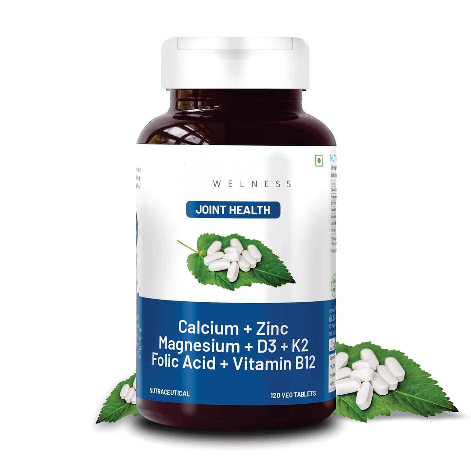 Calcium Magnesium Zinc Vitamin D3 K2 B12 Folic Acid | Joint Support Bone Strength| for Men & Women Health Supplement - 120 Vegetarian Tablets