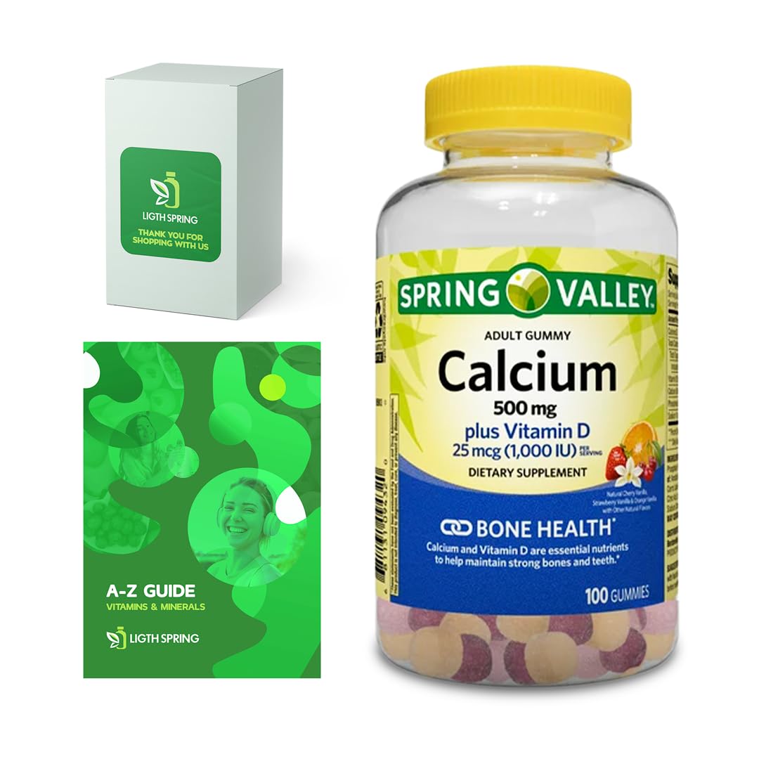 Calcium Plus Vitamin D Adult Gummies 500 mcg 1000 IU Assorted Flavors 100 Ct Bundle with Exclusive Vitamins & Minerals - A to Z - Better Ligth&Spring Guide (2 Items)