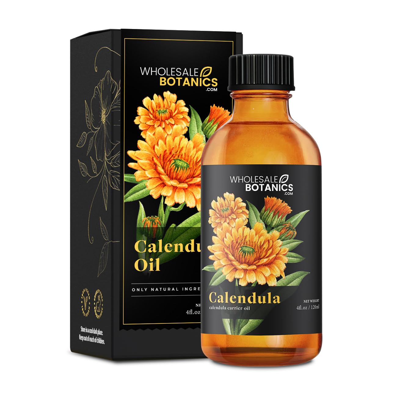 Calendula Oil by Wholesale Botanics Lightweight Aromatic Oil for DIY Skincare Massage & Aromatherapy | Vegan & Cruelty Free (4 Fl.Oz.)