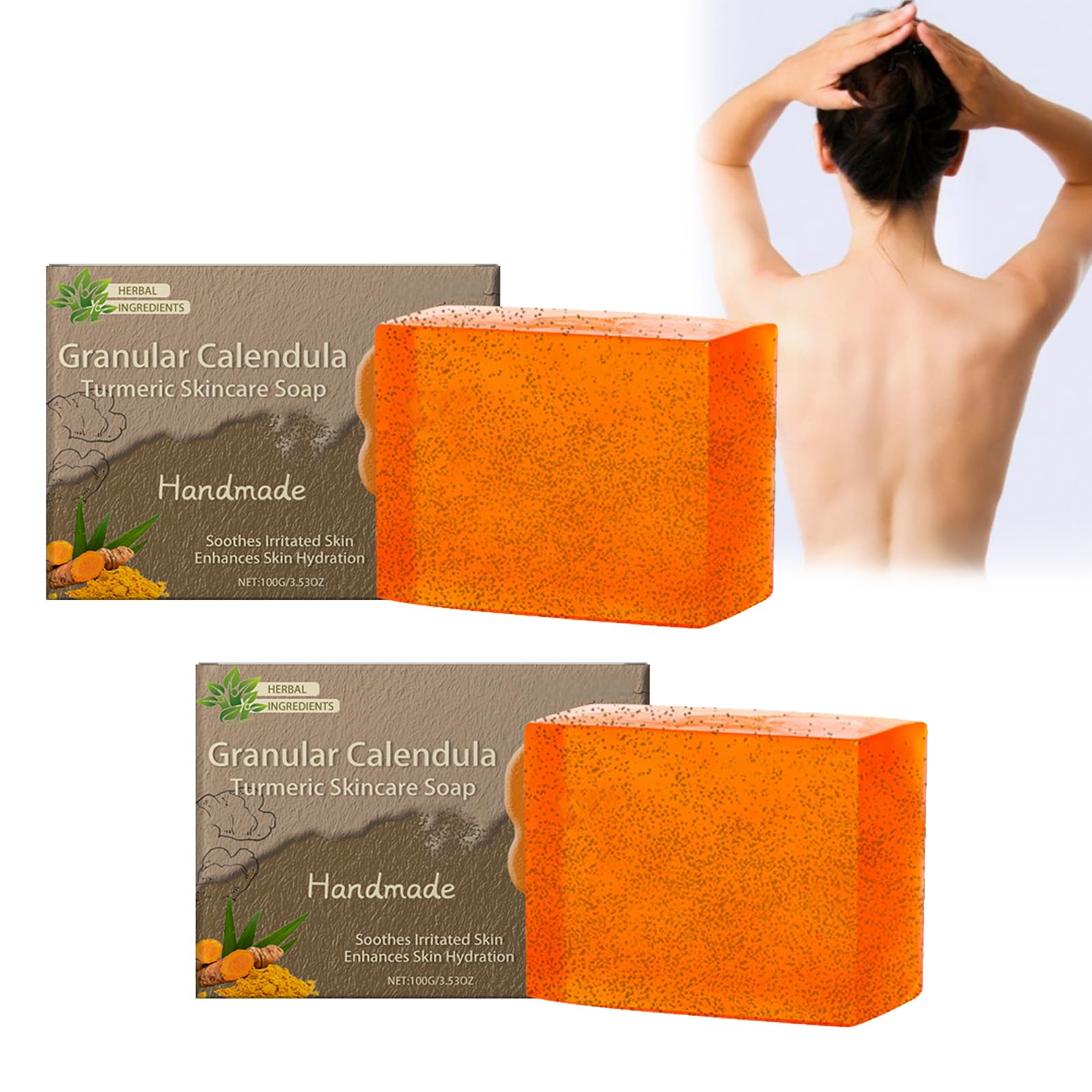 NATURALLY BOOSTING FORMULA: This soap contains calendula and turmeric and promotes the natural radiance of your skin. Its brightening properties even out the complexion and leave your complexion looking radiant and fresh after every use. OIL CONTROL AND BALANCE: This soap is ideal for oily and combination skin and effectively controls excess sebum production. It provides a balanced and matte complexion that remains shiny and hydrated all day long. DEEP CLEANSING: Powerful cleansing agents penetrate deep into the skin to remove impurities, dirt and makeup residue. Enjoy a deep cleansing that prevents breakouts and promotes a clear complexion. GENTLE EXFOLIATING: This soap has natural exfoliating properties that help remove dead skin cells without causing irritation. The result is smoother, softer skin that feels revitalized and looks healthy. VALUE PACKAGE FOR DAILY USE: Each pack contains two bars of soap, perfect for your daily skincare routine. Enjoy long-lasting use as you cleanse, brighten and nourish your skin with this effective and luxurious addition to your beauty regimen. SAFETY WARNING Keep the container tightly closed in a dry and well-ventilated place. Keep away from childrenVALUE PACKAGE FOR DAILY USE: Each pack contains two bars of soap, perfect for your daily skin care routine. Enjoy long-lasting use as you cleanse, brighten and nourish your skin with this effective and luxurious addition to your beauty regimen. GENTLE EXFOLIATING: This soap has natural exfoliating properties that help remove dead skin cells without causing irritation. The result is smoother, softer skin that feels revitalized and looks healthy. DEEP CLEANSING: Powerful cleansing agents penetrate deep into the skin to remove impurities, dirt and makeup residue. Enjoy a deep cleansing that prevents breakouts and promotes a clear complexion. OIL CONTROL AND BALANCE: This soap is ideal for oily and combination skin and effectively controls excess sebum production. It provides a balanced and matte complexion that remains shiny and hydrated all day long. NATURALLY BOOSTING FORMULA: This soap contains calendula and turmeric and promotes the natural radiance of your skin. Its brightening properties even out the complexion and leave your complexion looking radiant and fresh after every use.Calendula Kurkuma Zeep Verhelderende zeep voor natuurlijke gloed van de huid, calendula kurkuma gezichtsreiniger Natuurlijke kurkuma zeep voor gezicht en lichaam, olie controle en diepe reiniging NATUURLIJK VERHOGEND FORMULA: Deze zeep bevat calendula en kurkuma en bevordert de natuurlijke uitstraling van je huid. De verhelderende eigenschappen egaliseren de teint en laten je teint er na elk gebruik stralend en fris uitzien. OLIEBESTRIJDING EN BALANS: Deze zeep is ideaal voor de vette en gemengde huid en houdt overtollige talgproductie effectief onder controle. Ze zorgt voor een evenwichtige en matte teint die de hele dag blijft glimmen en gehydrateerd is. DIEP REINIGEND: De krachtige reinigende bestanddelen dringen diep door in de huid om onzuiverheden, vuil en make-upresten te verwijderen. Geniet van een diepe reiniging die puistjes voorkomt en een heldere teint bevordert. ZACHT EXFOLIEREN: Deze zeep heeft natuurlijke exfoliërende eigenschappen die dode huidcellen helpen verwijderen zonder irritatie te veroorzaken. Het resultaat is een gladdere, zachtere huid die gerevitaliseerd aanvoelt en er gezond uitziet. VOORDEEL PAKKET VOOR DAGELIJKS GEBRUIK: Elke verpakking bevat twee stukken zeep, perfect voor je dagelijkse huidverzorgingsroutine. Geniet van langdurig gebruik terwijl je je huid reinigt, verheldert en voedt met deze effectieve en luxe aanvulling op je schoonheidsregime. VEILIGHEIDSWAARSCHUWING Bewaar de verpakking goed gesloten op een droge en goed geventileerde plaats. Uit de buurt van kinderen houdenVOORDEEL PAKKET VOOR DAGELIJKS GEBRUIK: Elke verpakking bevat twee stukken zeep, perfect voor je dagelijkse huidverzorgingsroutine. Geniet van langdurig gebruik terwijl je je huid reinigt, verheldert en voedt met deze effectieve en luxe aanvulling op je schoonheidsregime. ZACHT EXFOLIEREN: Deze zeep heeft natuurlijke exfoliërende eigenschappen die dode huidcellen helpen verwijderen zonder irritatie te veroorzaken. Het resultaat is een gladdere, zachtere huid die gerevitaliseerd aanvoelt en er gezond uitziet. DIEP REINIGEND: De krachtige reinigende bestanddelen dringen diep door in de huid om onzuiverheden, vuil en make-upresten te verwijderen. Geniet van een diepe reiniging die puistjes voorkomt en een heldere teint bevordert. OLIEBESTRIJDING EN BALANS: Deze zeep is ideaal voor de vette en gemengde huid en houdt overtollige talgproductie effectief onder controle. Ze zorgt voor een evenwichtige en matte teint die de hele dag blijft glimmen en gehydrateerd is. NATUURLIJK VERHOGEND FORMULA: Deze zeep bevat calendula en kurkuma en bevordert de natuurlijke uitstraling van je huid. De verhelderende eigenschappen egaliseren de teint en laten je teint er na elk gebruik stralend en fris uitzien.
