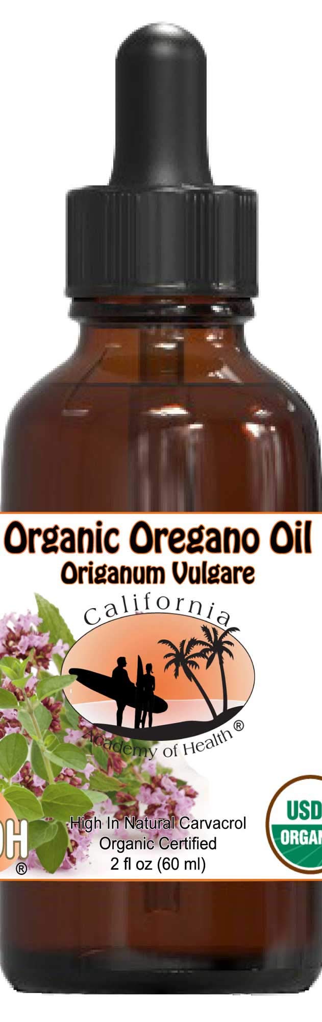 CALIFORNIA ACADEMY OF HEALTH Oregano Oil - 2 oz Bottle - 100% Pure Certified Organic Oregano Oil Since 2004