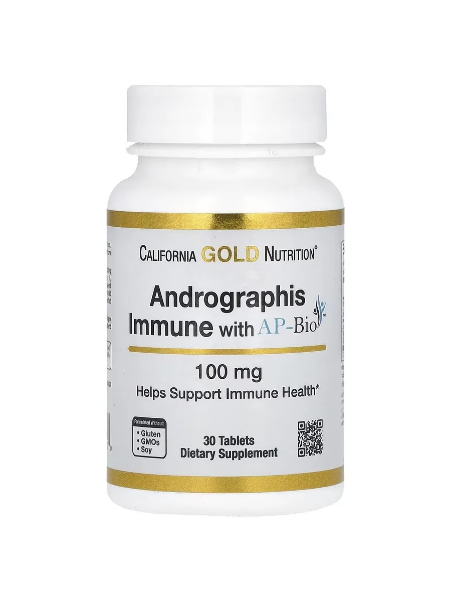 Добавка для укрепления иммунитета с экстрактом андрографиса AP-Bio от California Gold Nutrition содержит смесь витаминов, минералов и трав для поддержки здоровья иммунной системы и хорошего самочувствия в сезон простуд. Средство содержит клинически протестированную и быстродействующую форму экстракта листьев андрографиса (Andrographis paniculata), стандартизированного до 30% андрографолида.