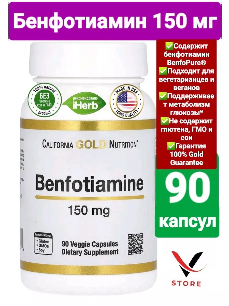 California Gold Nutrition Бенфотиамин, 150 мг, 90 растительных капсул