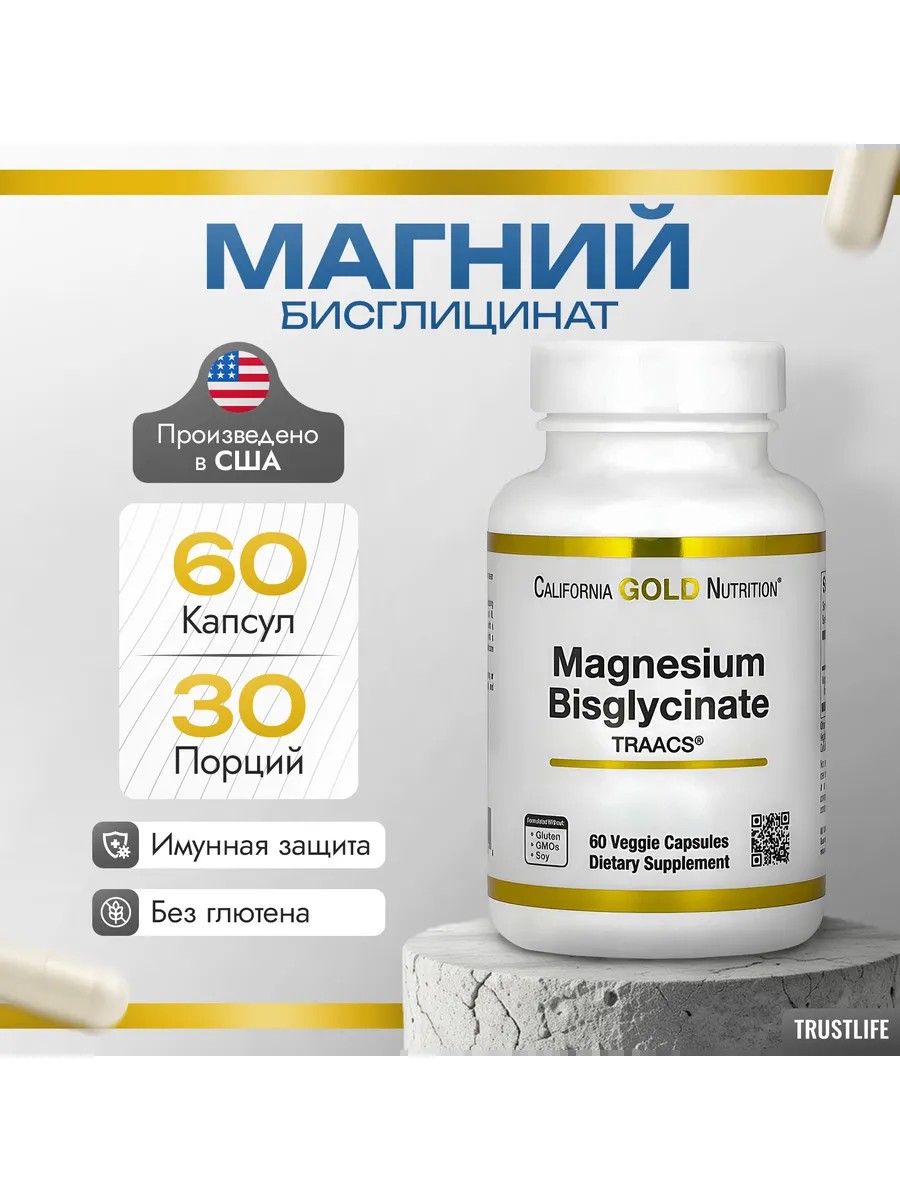 California Gold Nutrition Бисглицинат магния 200 мг 60 капсул