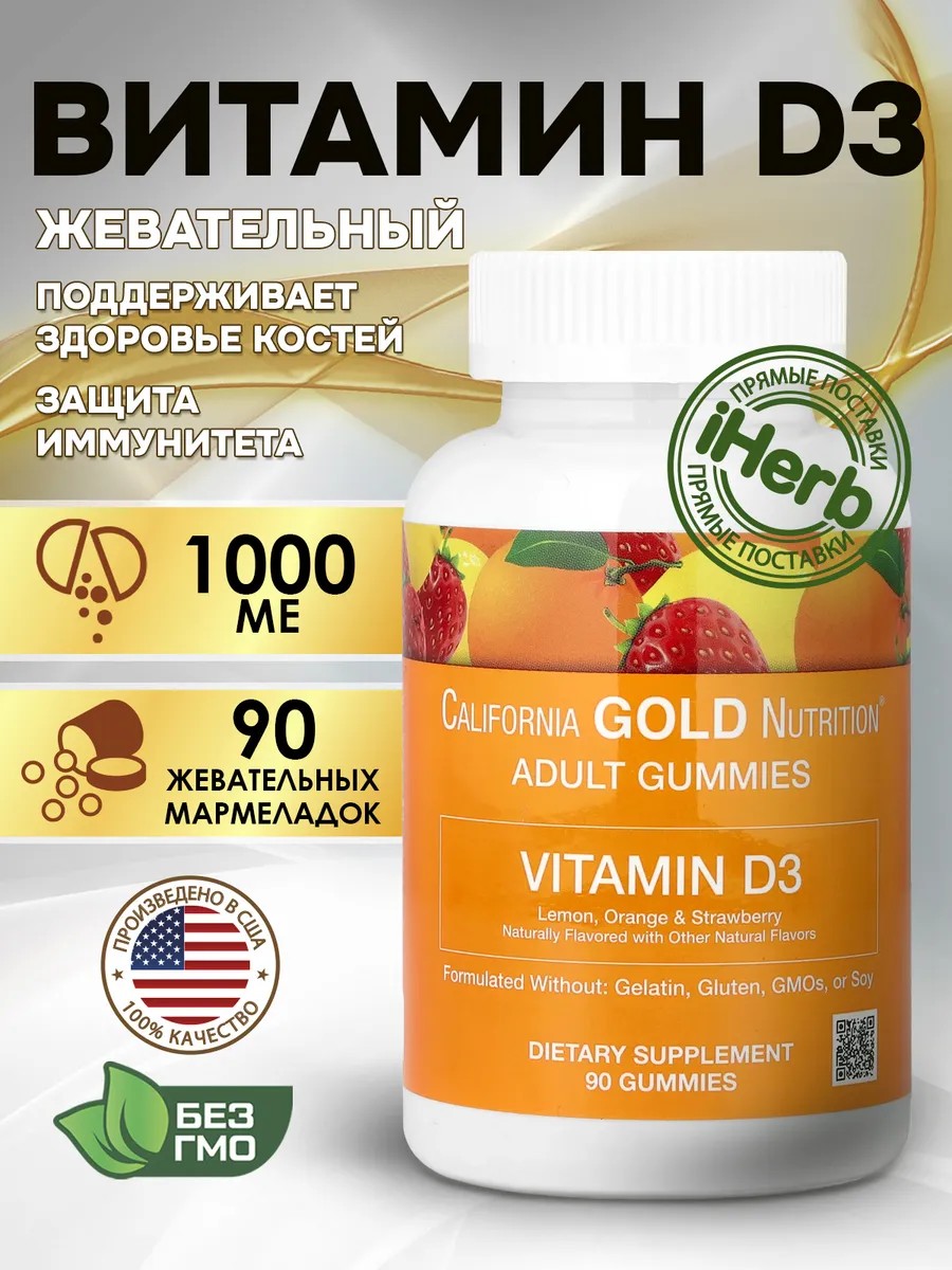 Витамин D является важным питательным веществом, в котором ваш организм нуждается ежедневно. Жевательные таблетки с витамином D3 от California Gold Nutrition — это интересный и удобный способ получить суточную дозу витамина D для поддержания здоровья костей и иммунной системы*.