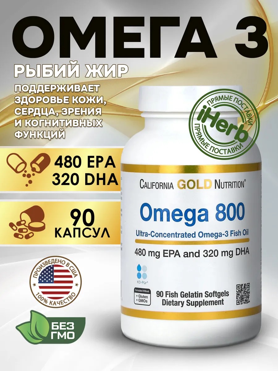 Омега 800, ультраконцентрированный рыбий жир с омега-3 от California Gold Nutrition, содержит качественный рыбий жир KD-PÜR IFOS , который очищается и обрабатывается в Германии в соответствии со строжайшими отраслевыми стандартами. Этот рыбий жир премиального качества содержится в капсулах из рыбьего желатина, которые производятся в Калифорнии, США.