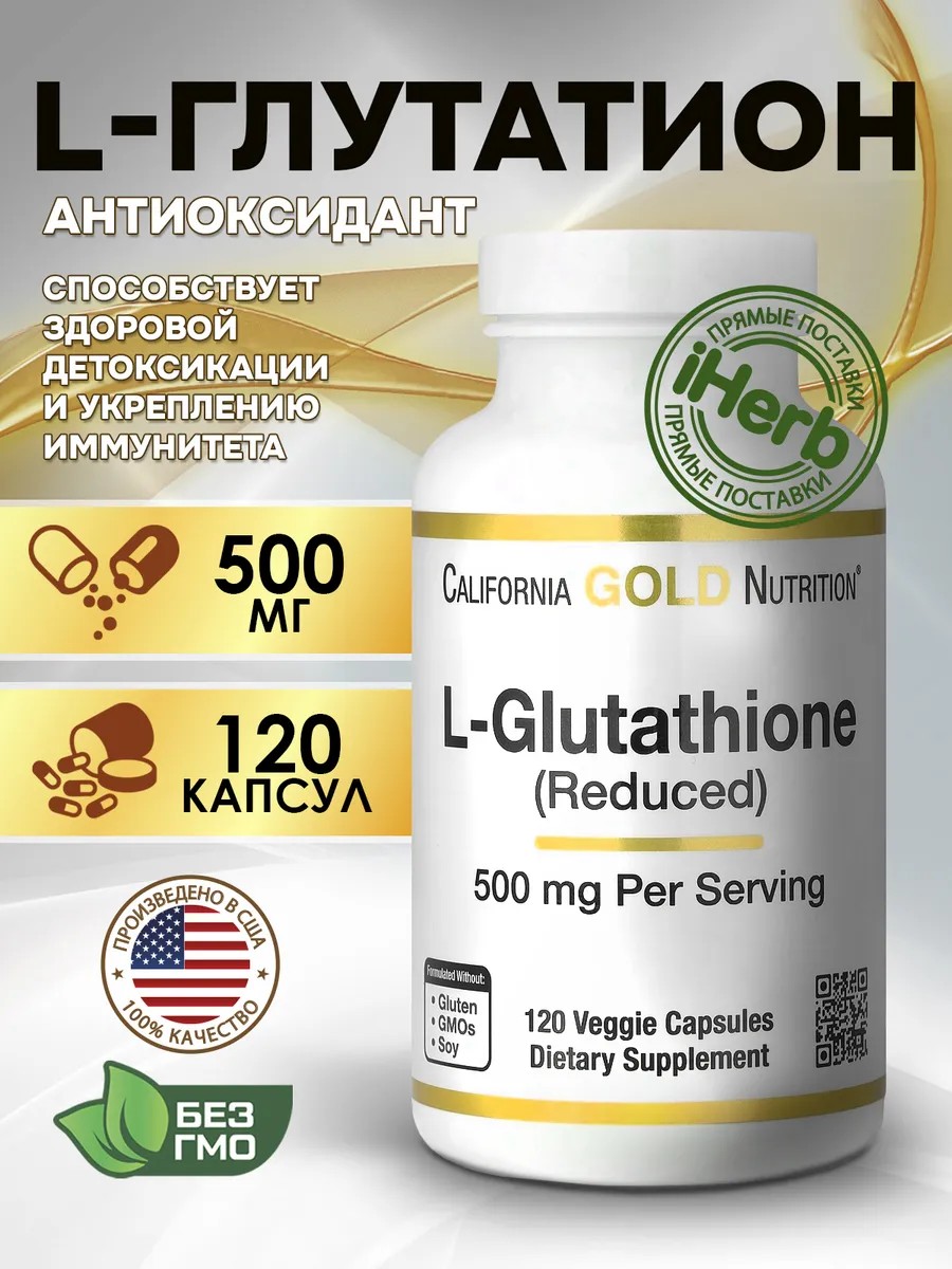 California Gold Nutrition California Gold, L-глутатион 500 мг, 120 растительных капсул