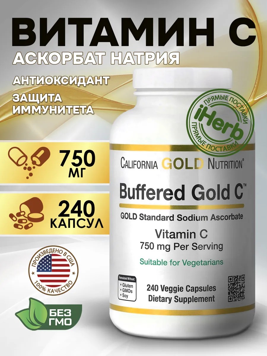 Буферизованный витамин C Gold C от California Gold Nutrition содержит буферизованную форму витамина C в виде аскорбата натрия. Витамин заключён в вегетарианские капсулы из тапиоки под названием TapiOcaps , которые помогают поддерживать качество и эффективность добавки, защищая чувствительные к кислороду ингредиенты.