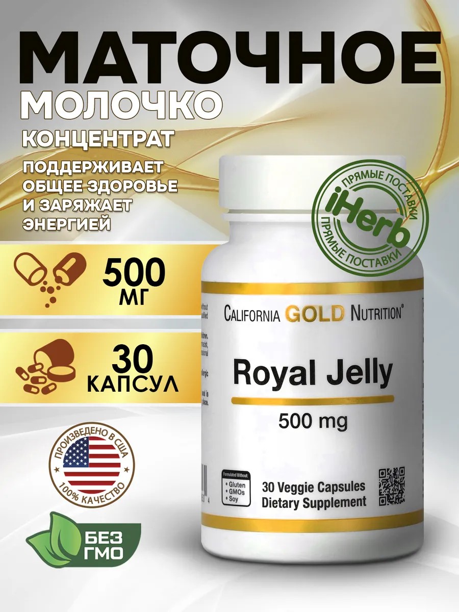 California Gold Nutrition California Gold, Маточное молочко 500 мг, 30 вег. капсул