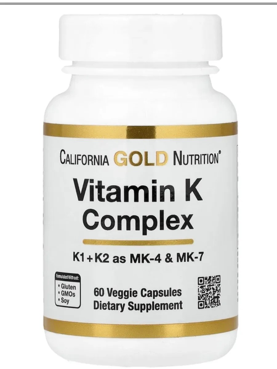California Gold Nutrition California Gold, Vitamin K, Комплекс витаминов группы K, 60 капсул