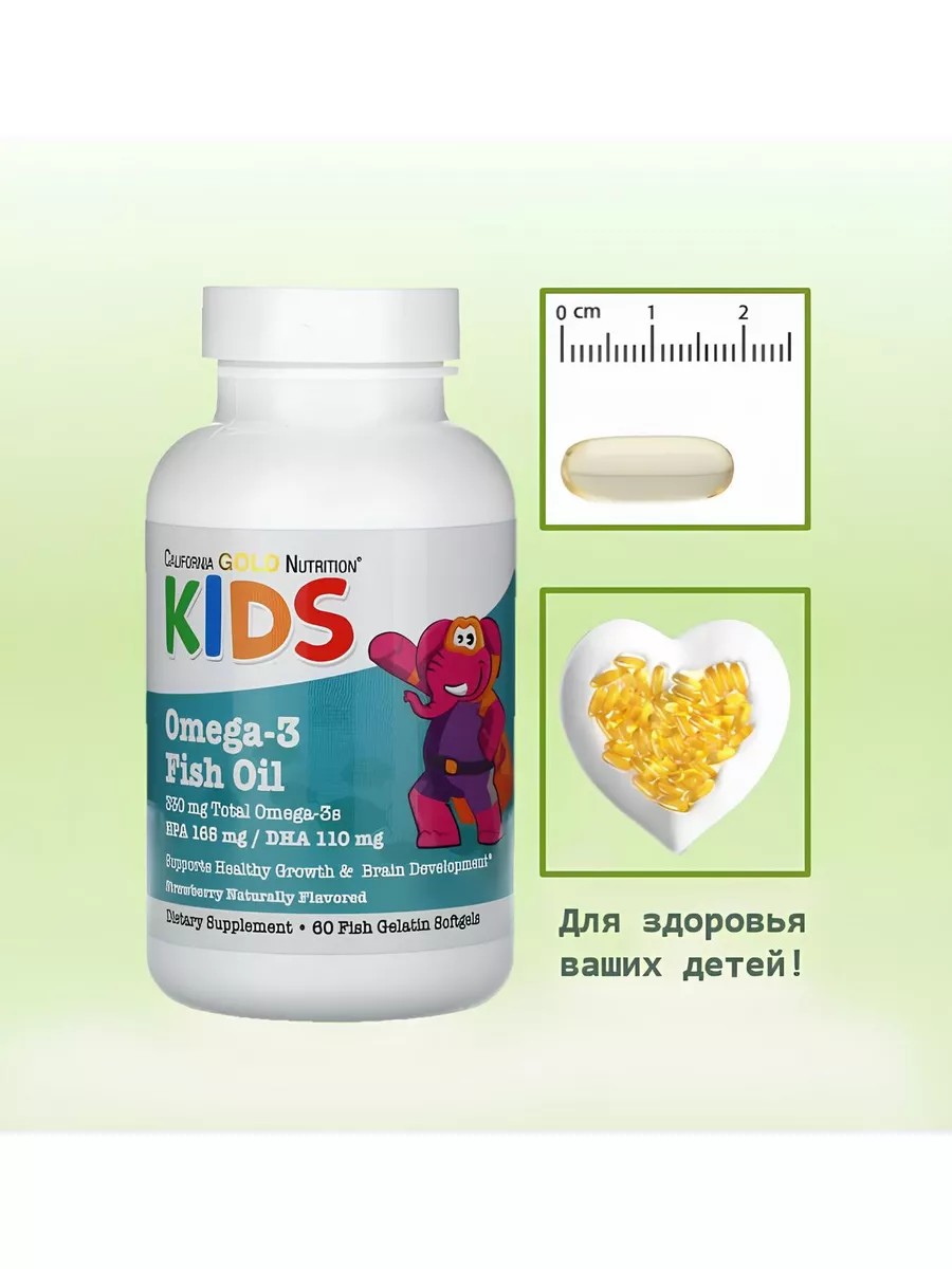 Растущему организму ребенка важно получать необходимую питательную поддержку. А когда одного только рациона недостаточно, на помощь приходят добавки. Рыбий жир с омега-3 для детей от California Gold Nutrition содержит незаменимые жирные кислоты омега-3, которые способствуют здоровому росту и развитию мозга у детей*.