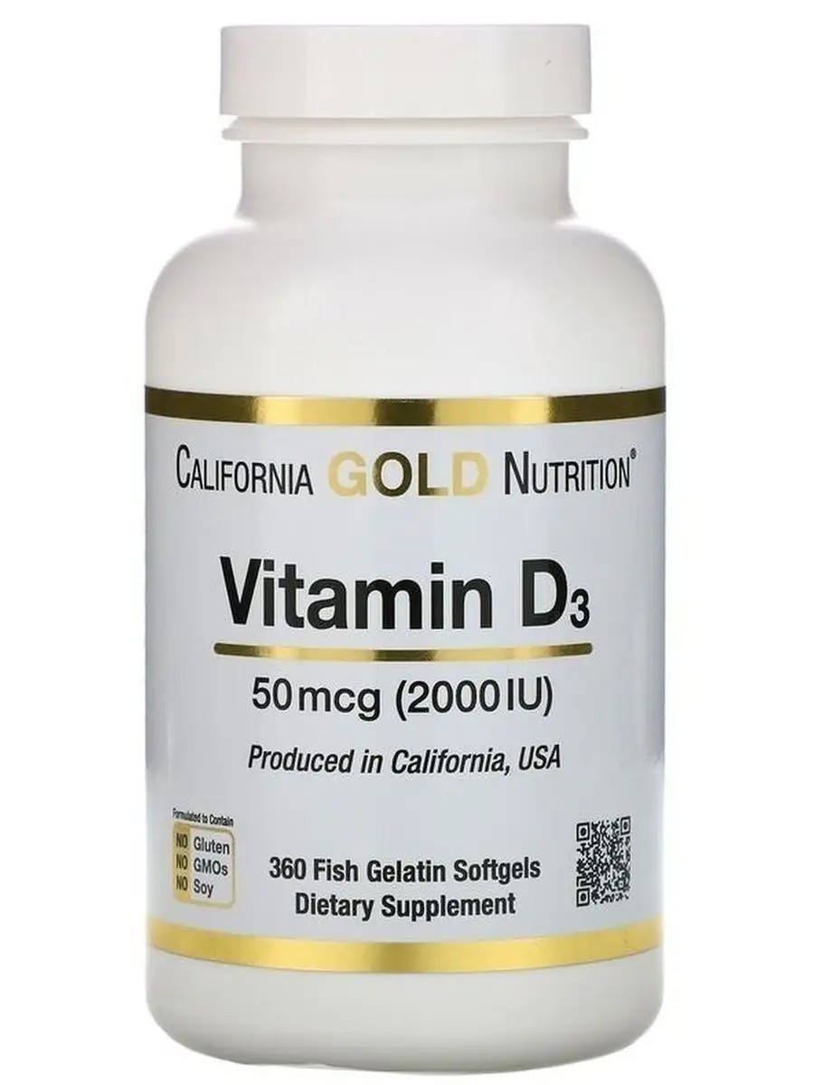 California Gold Nutrition Vitamin D3 2000 IU 360 Capsules. It is an essential vitamin for many metabolic processes, helps regulate calcium and phosphorus absorption, and supports normal immune system function. California Gold Nutrition Vitamin D3 contains vitamin D3 as cholecalciferol from lanolin, which helps maintain healthy teeth and bones.