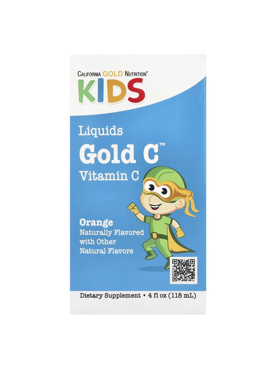 California Gold Nutrition Kids Liquid Supplement features our Gold C, quality-tested to meet strict requirements.