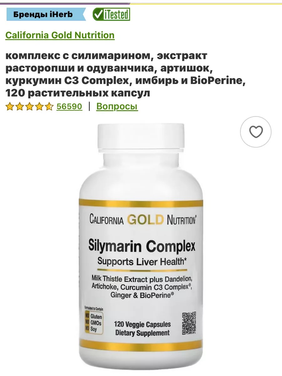 California Gold Nutrition Silymarin Complex (Silymarin complex for liver health) is a comprehensive natural hepatoprotector. It helps cleanse the liver and enhances its functions, improves blood composition and overall well-being. Enhances the production and excretion of bile.