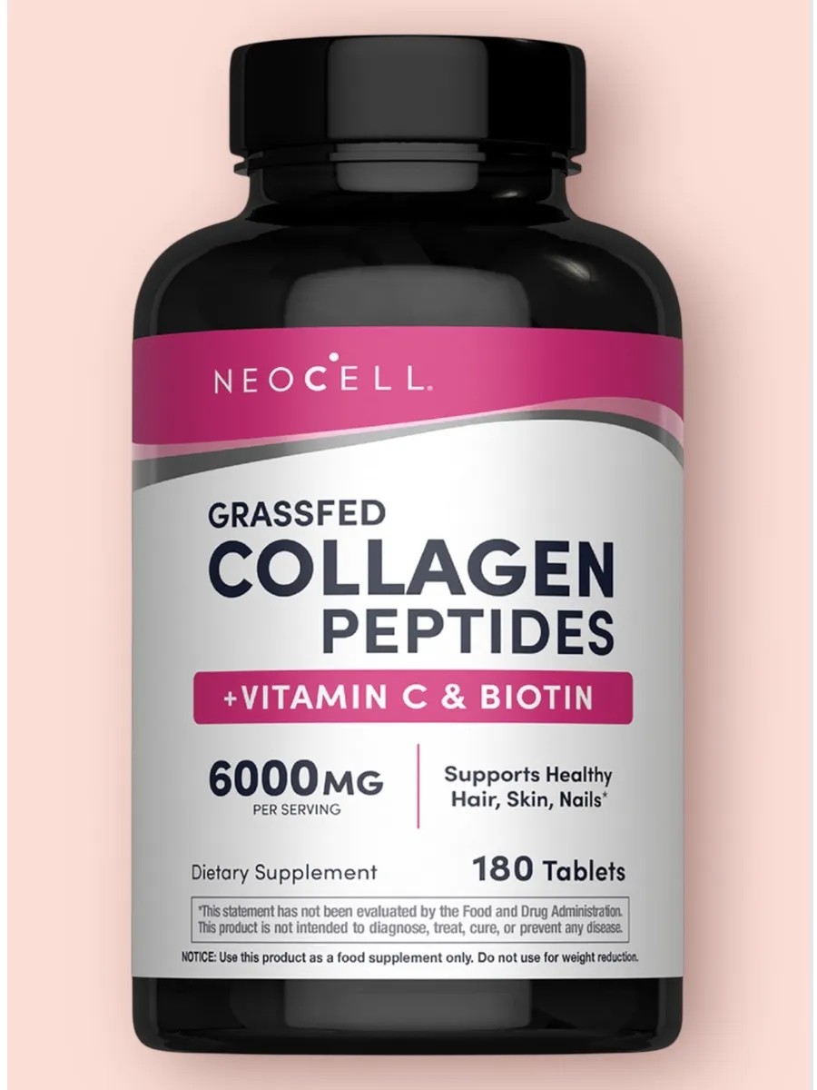 COLLAGEN TABLETS: One pack of 180 NeoCell Super Collagen tablets with Vitamin C and Biotin, a supplement that supports healthy skin, hair, nails, and joints to promote your beauty from the inside out.