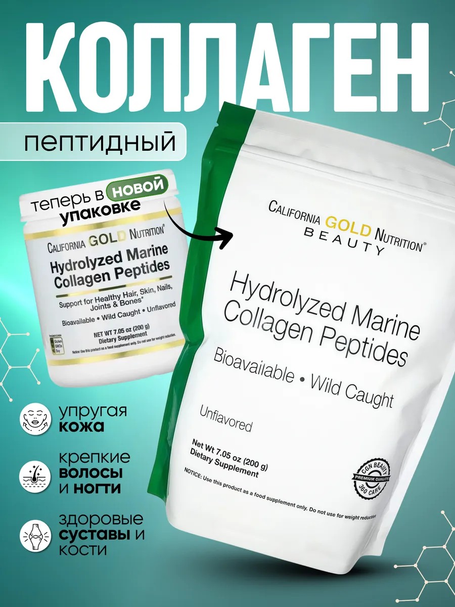 | Комплектация | California Gold Nutrition, гидролизованные пептиды морского коллагена, без добавок, 200г |