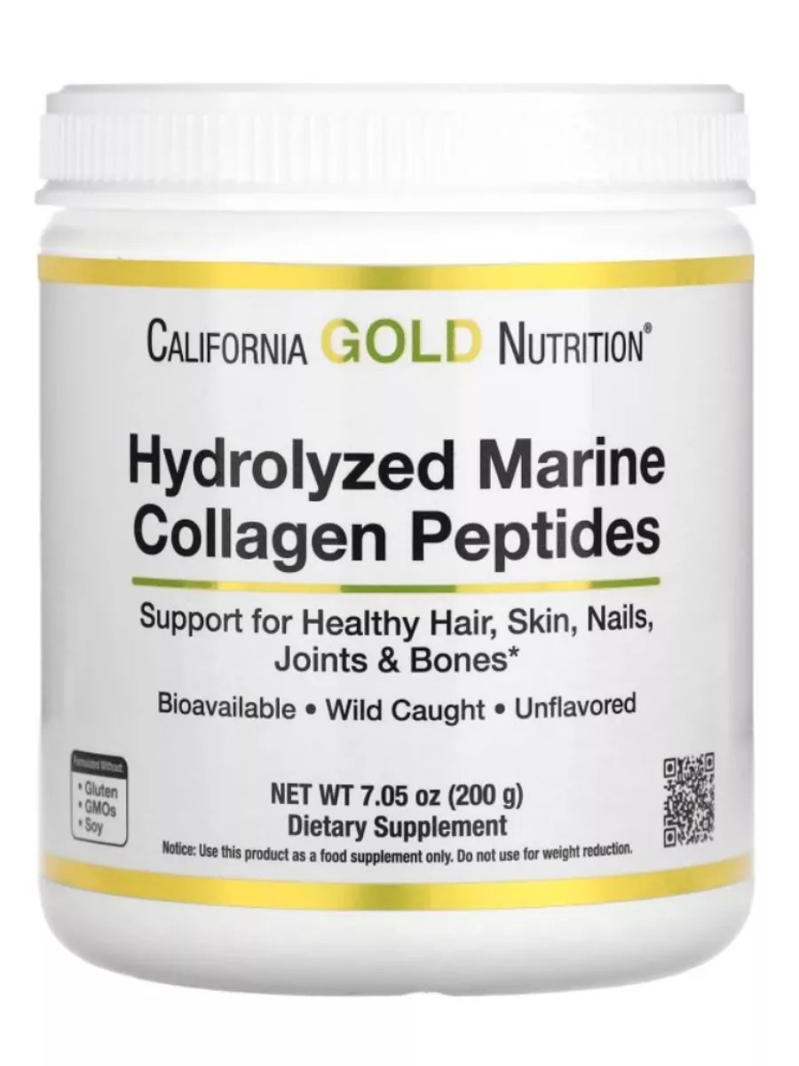 California Gold Nutrition Hydrolyzed Marine Collagen Peptides features naturally occurring, unflavored marine collagen derived from the skin of wild-caught deep-sea and cold-water fish.