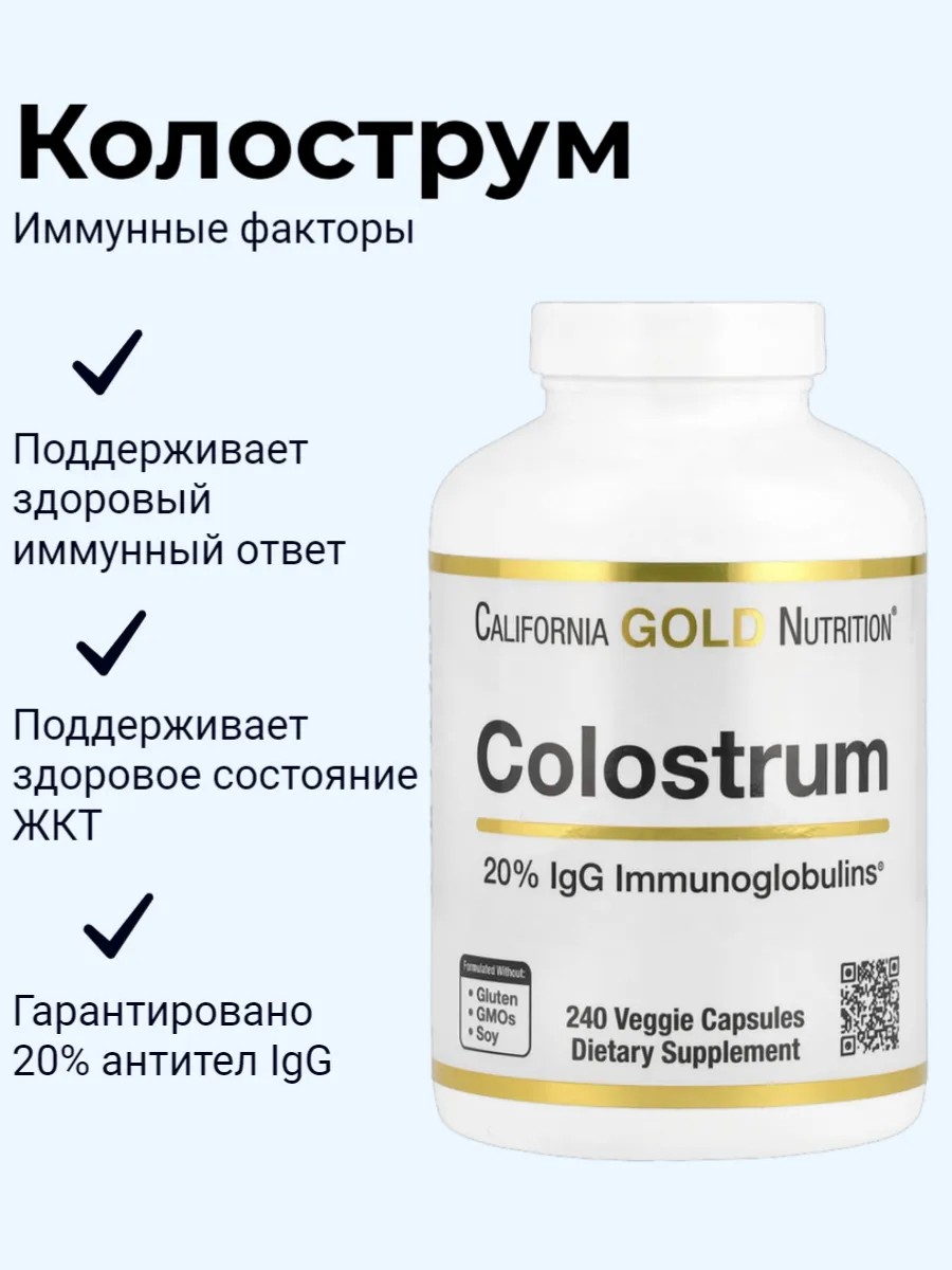 California Gold Nutrition Колострум, Colostrum, 240 капсул