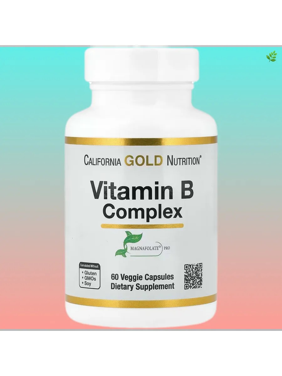 Комплекс витаминов группы B от California Gold Nutrition содержит несколько незаменимых витаминов группы B, включая тиамин (B1), рибофлавин (B2), ниацин (B3), пиридоксин (B6), биотин (B7), пантотеновую кислоту (B5) и профолат Magnafolate (B9).