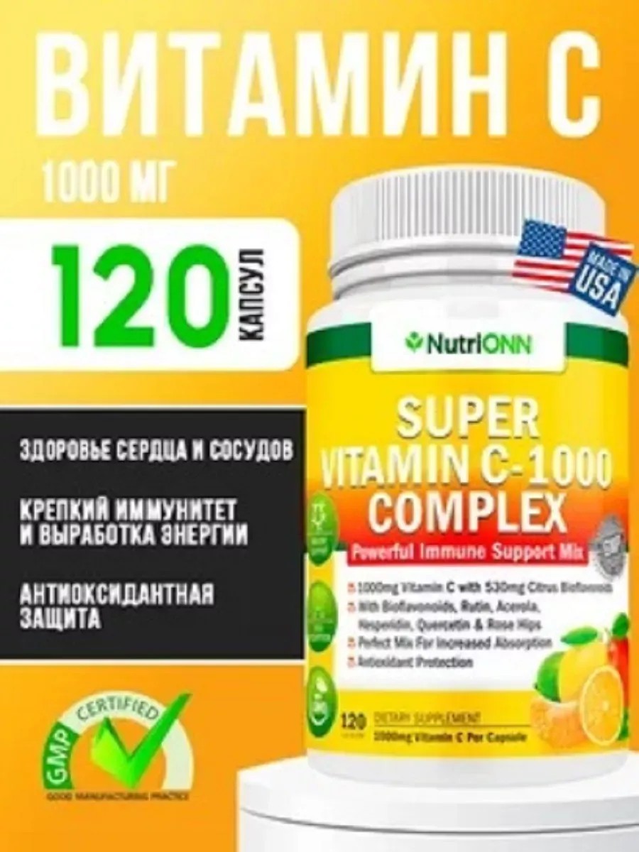 Комплекс Витамин С от NutriONN (120 капсул) - это комплекс премиум-класса, который производится из самого лучшего сырья и в соответствии со строгими стандартами контроля качества без добавления искусственных ингредиентов, наполнителей и связывающих веществ. Сокращает продолжительность и интенсивность неприятных симптомов респираторных заболеваний Уникальная формула, включающая мощные антиоксиданты, такие как витамин С, цинк и шиповник. Синергетический эффект взаимодействия специально подобранных ингредиентов обеспечивает иммунную защиту от вредных воздействий окружающей среды. В отличие от нашего продукта, другие продукты для поддержки иммунитета содержат наполнители и искусственные ингредиенты, которые могут еще больше подавить вашу иммунную систему (иммунодепрессанты). Витамин C для взрослых способствует улучшению самочувствия, состояния кожи, волос и ногтей. Витамин С порошок в ежедневном рационе - это укрепление стенок кровеносных сосудов, лучшее усвоение кальция и железа в организме, защита от стресса. Витамин C - универсальный компонент, который используют для комплексной антиоксидантной защиты организма. Для лучшего усвоения рекомендуем принимать витамин С совместно с цинк хелат, который поможет еще больше укрепить барьерные функции организма, увеличить антиоксидантный эффект, а еще улучшить структуру волос и ногтей. Витамин с – это элемент, который способствует замедлению процессов старения, восстановлению сил и энергии и укреплению иммунитета. Перед применением проконсультируйтесь с врачом. Наш бренд также предлагает широкий выбор витаминов, микроэлементов, аминокислот для всей семьи: мужчин, женщин и детей.