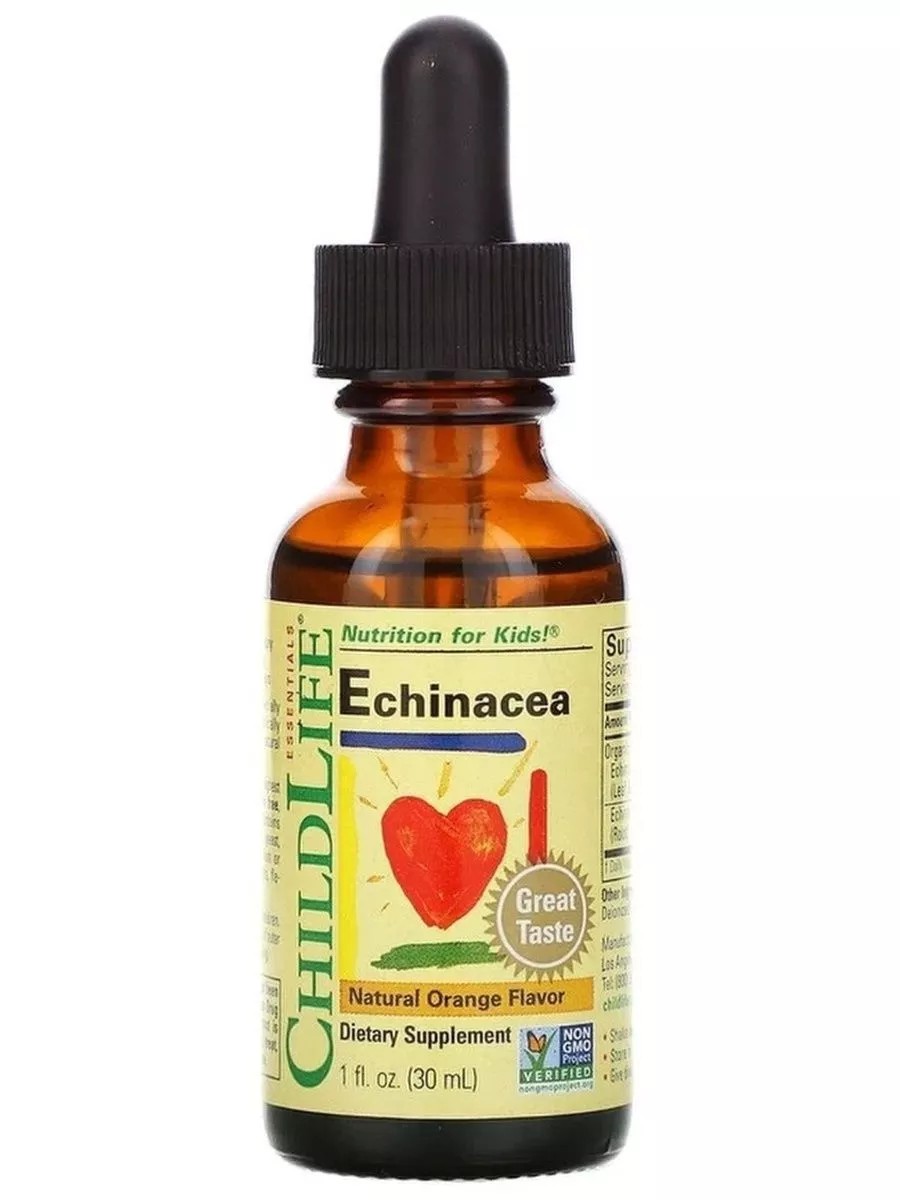 ChildLife Echinacea is specially formulated for babies and children: it is organically grown and flavored with natural sweet orange essential oil. For disease prevention and immune support in children. Directions for use: INFANTS 6 months to 1 year: 0.25 ml once every two days. CHILDREN OLDER THAN 1 year: 0.5 ml once every two days. As needed: take 4 times a day for no more than 10 days. Shake well before use. Can be given undiluted or mixed with any child's drink. Store in a cool, dry place. Keep out of reach of children. Not a medicine.