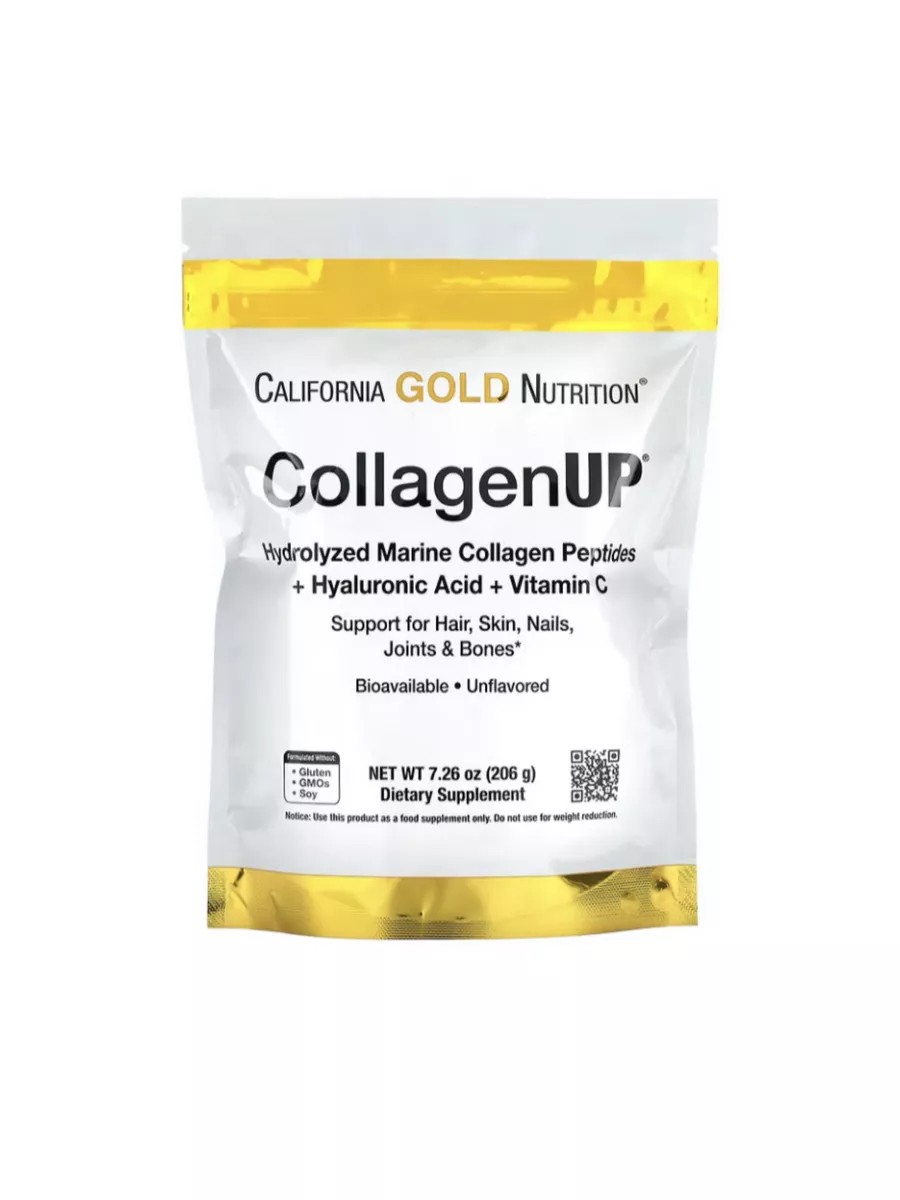 Коллаген, гиалуроновая кислота и витамин C способствуют здоровью и нормальному функционированию опорно-двигательного аппарата. CollagenUP от California Gold Nutrition содержит все три ингредиента для поддержания здоровья волос, кожи, ногтей, суставов и костей. Порошок без вкусовых добавок можно быстро смешивать с любимым напитком, что делает его удобным способом добавить коллаген в свой рацион.Преимущества витамина C, гиалуроновой кислоты и коллагена:Коллаген — основной структурный белок, который содержится в тканях и органах тела и обеспечивает ключевые процессы жизнедеятельности внутри и снаружи организма. Гиалуроновая кислота входит в состав соединительной ткани и обеспечивает жидкость для смазывания суставов, а также увлажнения и восстановления кожи. Витамин C играет важную роль в выработке коллагена и обеспечивает антиоксидантную защиту. Исследования показывают, что регулярное потребление этих питательных веществ обеспечивает организм основными строительными блоками, которые помогают поддерживать здоровье суставов, костей, кожи, волос и ногтей.CollagenUP от California Gold Nutrition содержит пептиды морского коллагена без добавления бычьего коллагена, а также гиалуроновую кислоту и витамин C. Прошедший специальную обработку рыбий коллаген подвергается ферментативному гидролизу (расщеплению) до пептидов аминокислот с низким молекулярным весом, чтобы обеспечить оптимальную усвояемость и биодоступность. Рекомендации по применению:Принимайте 1 мерную ложку в день (5,16 г), предварительно смешав примерно с 60 мл воды или сока комнатной температуры. Добавьте еще 180–240 мл воды или сока комнатной температуры и хорошо перемешайте (для достижения наилучших результатов перемешайте в блендере). Пейте натощак, по крайней мере, за 1 час до или через 2 часа после еды или согласно рекомендациям медицинского работника. Избегайте приема с другими продуктами, содержащими белок, так как они могут препятствовать усвоению коллагена.