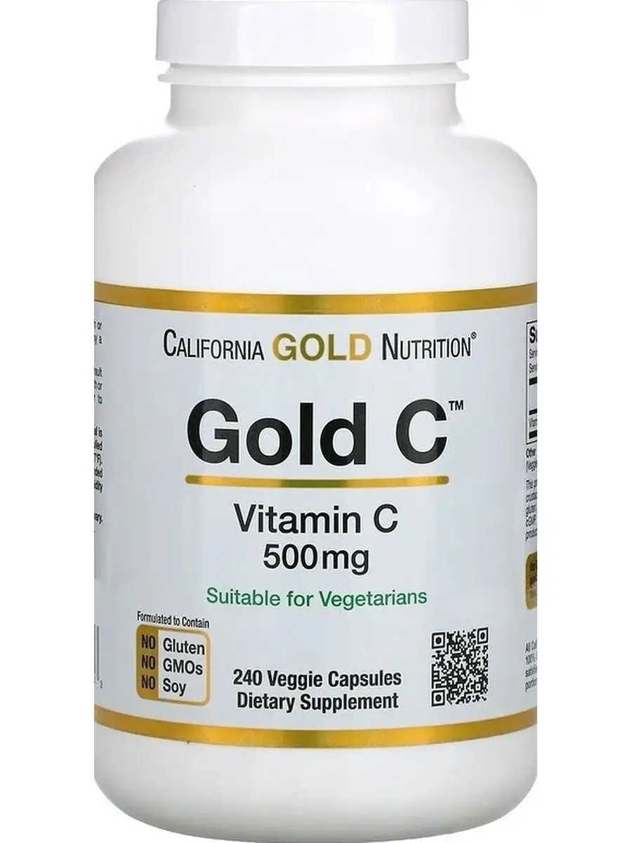 California Gold Nutrition, Gold C, витамин C, 500 мг, 240 вегетарианских капсул содержит витамин С фармацевтической чистоты, проходит тройную проверку качества для подтверждения соответствия строгим стандартам качества. По данным этих исследований, витамин С способствует развитию крепкого иммунитета, полезен для сердечно-сосудистой системы, мозга и кожи, а также обладает множеством других благоприятных для здоровья свойств.