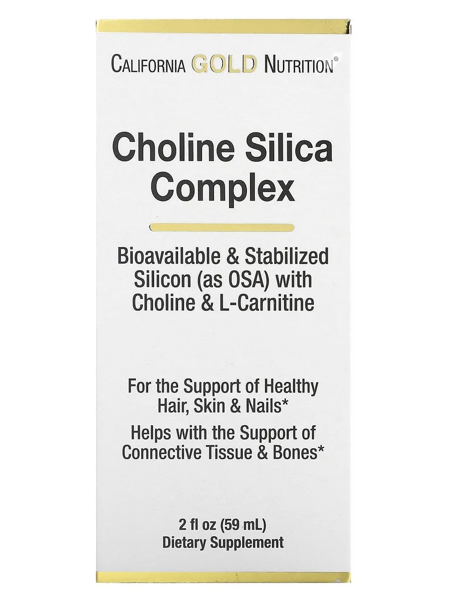 Комплекс с холином и диоксидом кремния от CaliforniaGoldNutrition содержит холин, силикон и L-карнитин в виде удобной жидкой добавки. Эти простые в использовании капли можно смешивать с любимым напитком или принимать отдельно.