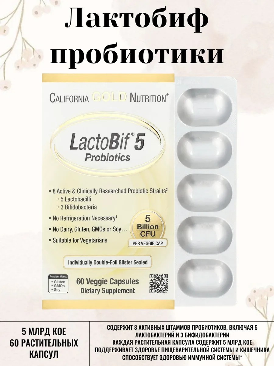 California Gold Nutrition LactoBif, Лактобиф пробиотики, 5 млрд 60 капсул