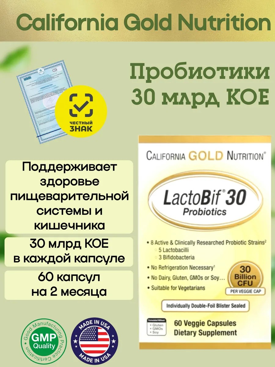| Полное наименование товара | Lactobif 30 California Gold Nutrition 60 caps |