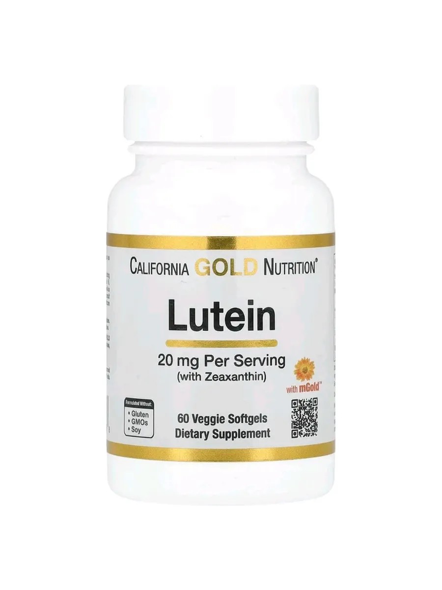 Лютеин от California Gold Nutrition изготовлен на основе экстракта бархатцев , полученного из цветков бархатцев мелкоцветных (Tagetes erecta), и содержит лютеин и зеаксантин. Одна упаковка рассчитана на прием в течение четырех месяцев (при соблюдении рекомендованной дозы).