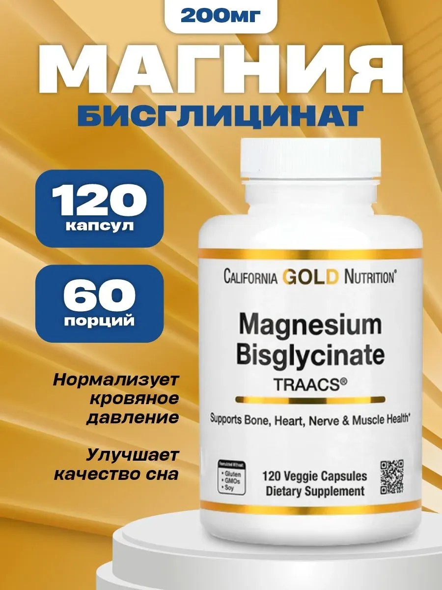 California Gold Nutrition Магний Бисглицинат 200мг с TRAACS 120 капсул