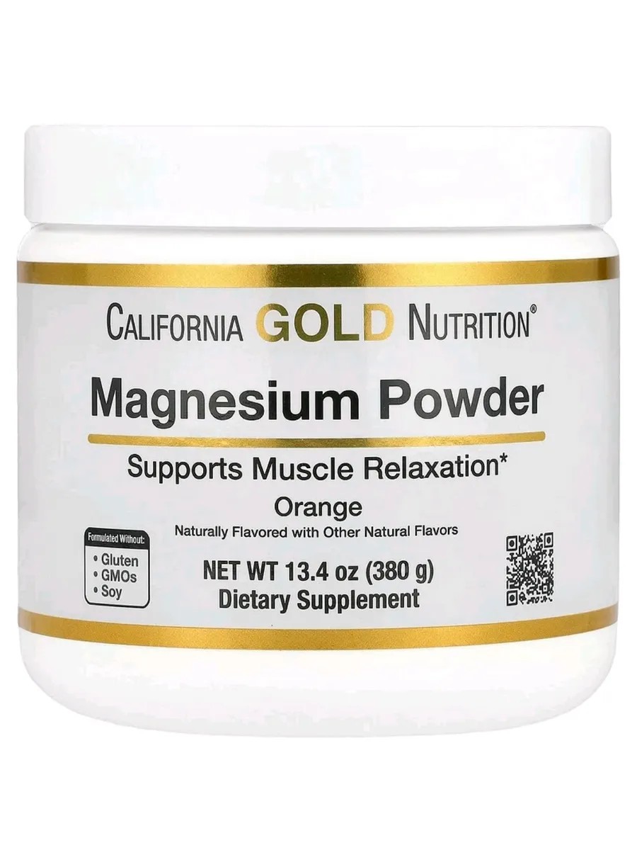 California Gold Nutrition Магний в растворимом порошке со вкусом апельсина 380г