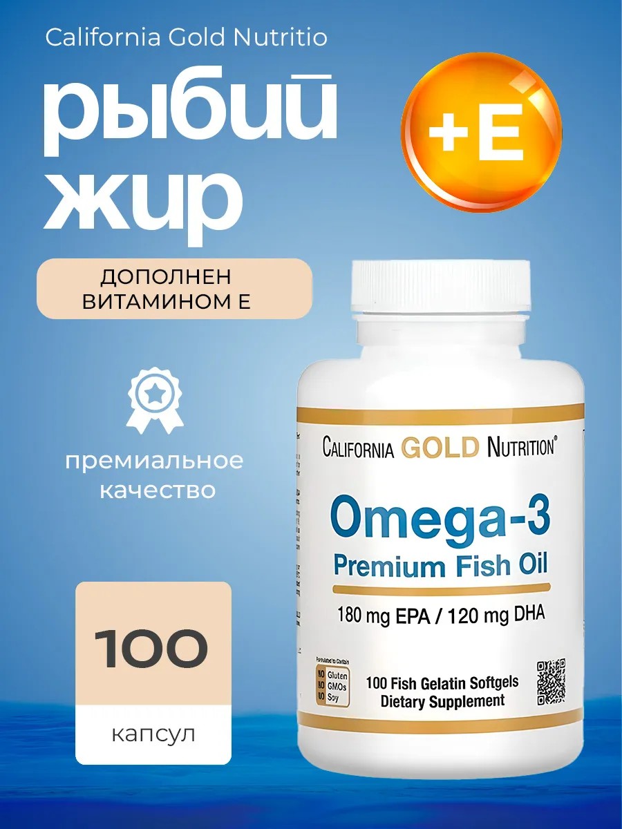 California Gold Nutrition Омега 3, 100 капсул Рыбий Жир премиального качества