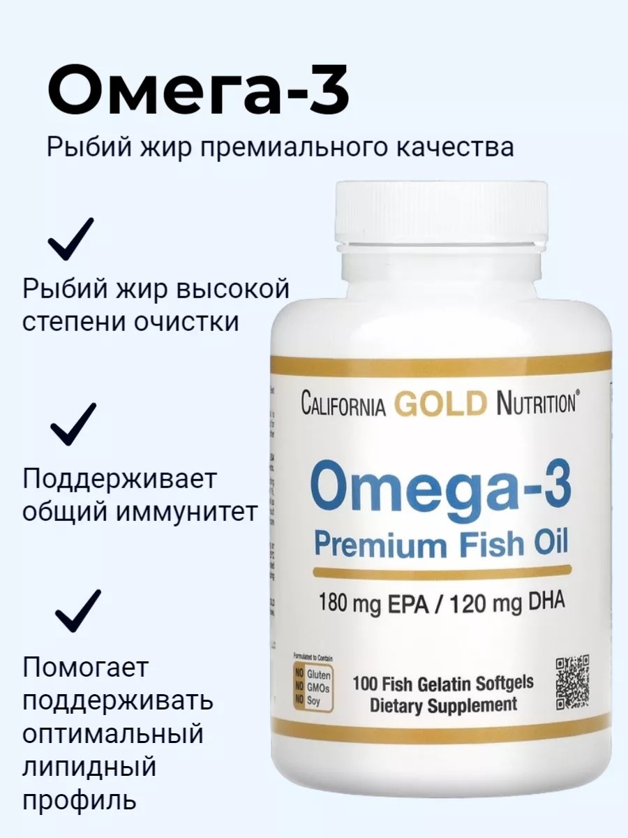 Жирные кислоты омега-3 — это один из видов «полезных жиров», содержащихся во многих видах рыбы, которые организм может использовать для поддержки своих различных функций. Рыбий жир омега-3 премиального качества от California Gold Nutrition содержит несколько омега-3 жирных кислот, в том числе ДГК и ЭПК, которые ежедневно помогают получать достаточное количество этих питательных веществ, способствуя здоровью многих систем организма*.