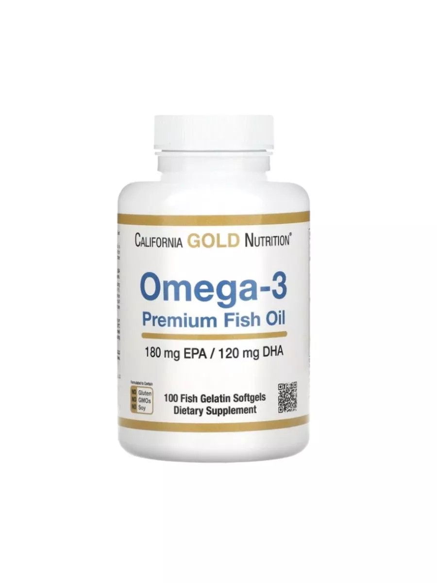 Рыбий жир омега-3 премиального качества California Gold Nutrition. Очистка на молекулярном уровне. Предпочтительная форма триглицерида, не содержит холестерина. 360 мг ЭПК и 240 мг ДГК на 2000 мг капсул — две капсулы в день! 100 капсул из рыбьего желатина (без использования свинины и говядины), произведенных в Калифорнии, США. Способствуют укреплению здоровья и улучшению самочувствия, а также помогают поддерживать оптимальный липидный баланс. Продукт не содержит глютена, ГМО и сои. Производится на предприятии, которое имеет регистрацию текущей надлежащей производственной практики (GMP) и проходит независимые проверки. Диета с достаточным количеством «хорошего жира» полезна для здоровья, поскольку способствует снижению риска сердечно-сосудистых заболеваний, здоровой работе мозга и улучшению общего состояния здоровья и самочувствия.Рыбий жир омега-3 премиального качества от Калифорния голд нутришн — это натуральный, очищенный на молекулярном уровне концентрат рыбьего жира. Рекомендации по применению: принимать по 2 капсуле в день независимо от приемов пищи. Рекомендуется принимать в соответствии с назначением квалифицированного медицинского работника.