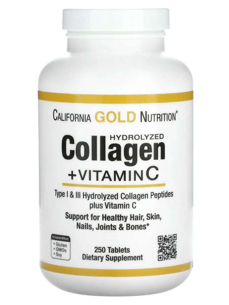 Hydrolyzed collagen with vitamin C from California Gold Nutrition Collagen contains unique, clinically studied, enzymatically hydrolyzed low-molecular-weight collagen peptides and vitamin C.