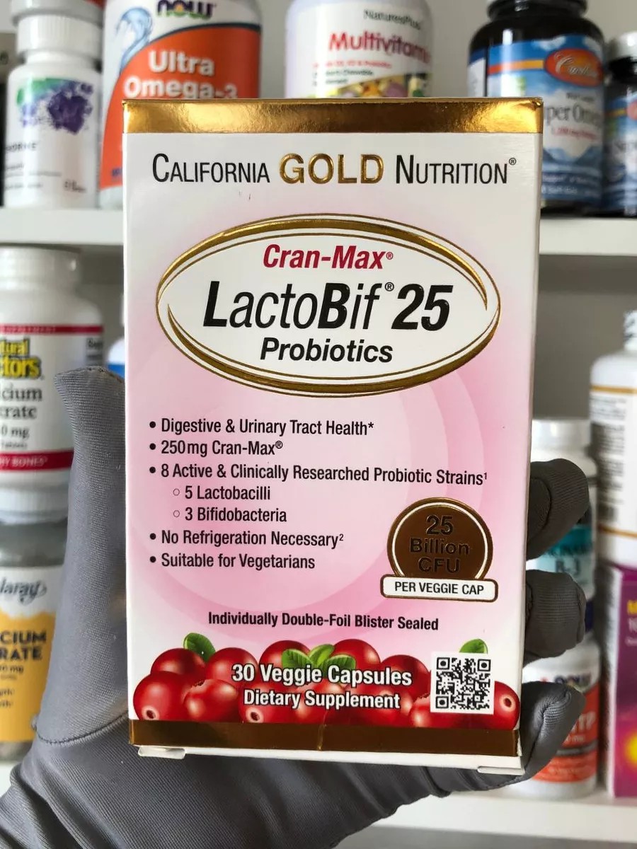 Естественный микробиом полезных бактерий в вашем организме может стать несбалансированным из-за неправильного питания или других факторов, вызывая неприятные симптомы и влияя на вашу повседневную жизнь. Ежедневный прием пробиотиков может помочь предотвратить эту проблему. Пробиотик Cran-Max LactoBif от California Gold Nutrition содержит пробиотики и биодоступный клюквенный концентрат для поддержания здоровья пищеварительного тракта и мочевыводящих путей.