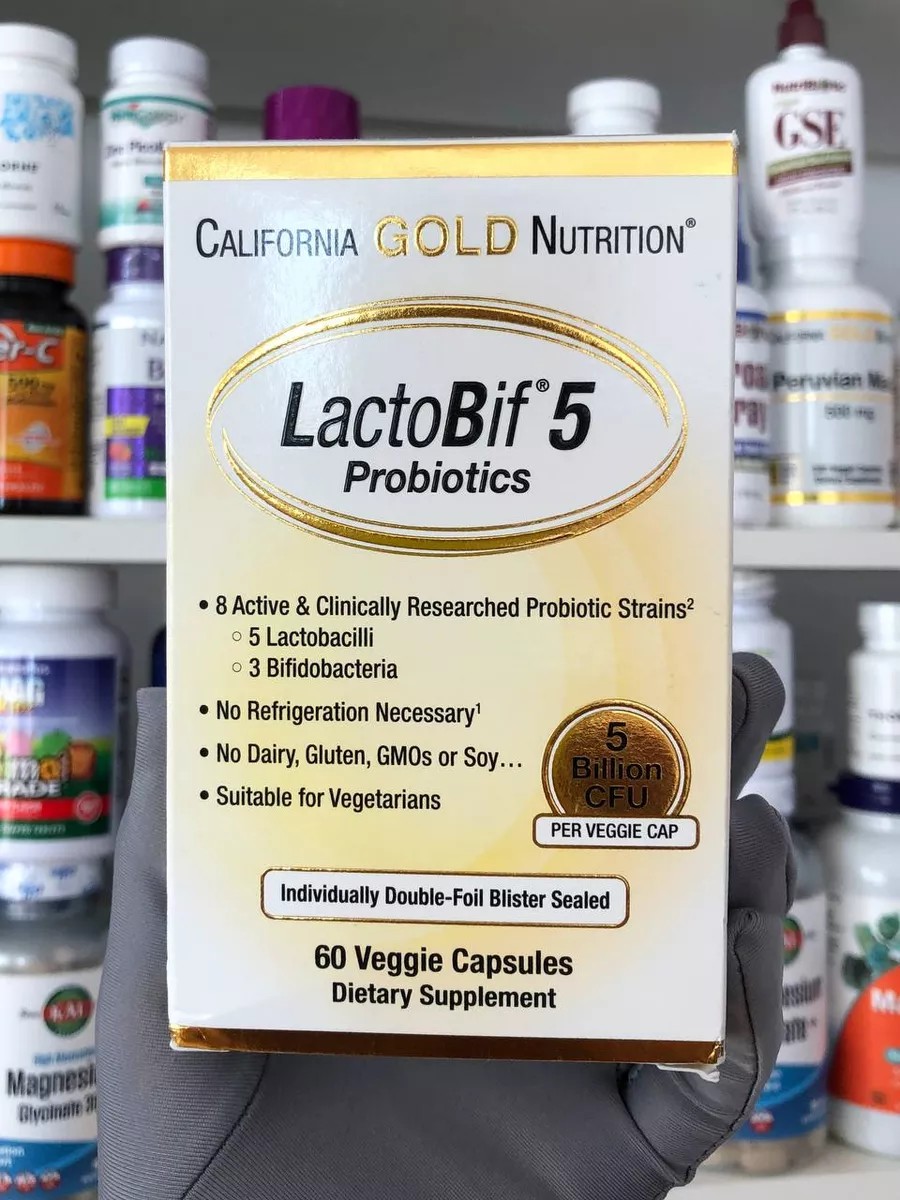 Пробиотики Lactobif 5 от CaliforniaGoldNutrition содержат 8активных штаммов пробиотиков, в том числе 5штаммов лактобактерий и 3штамма бифидобактерий. Каждая вегетарианская капсула содержит 5млрдКОЕ, чтобы доставлять в организм эффективное количество полезных бактерий.