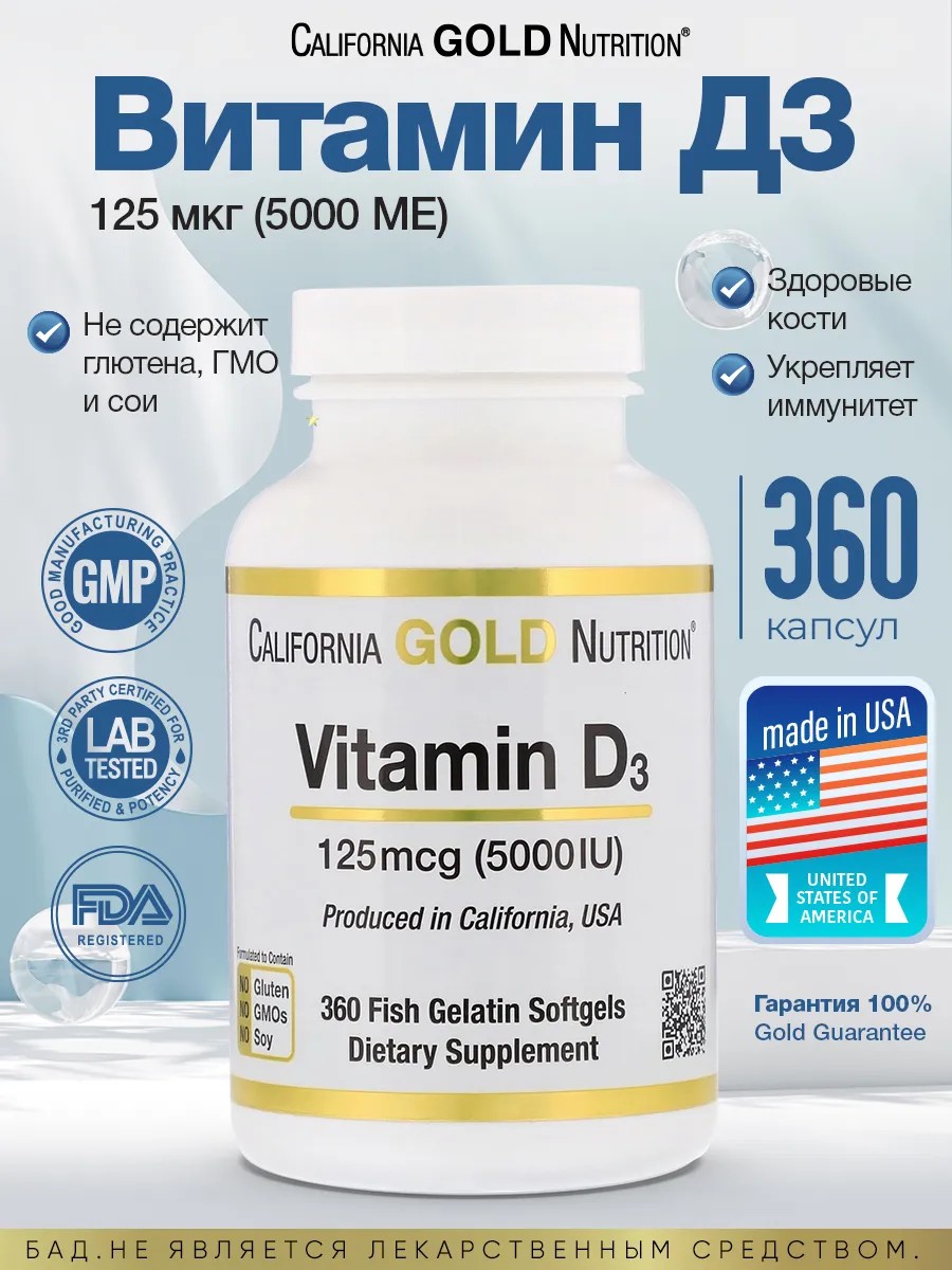 California Gold Nutrition Витамин Д3 5000 МЕ 125 mcg 360 caps