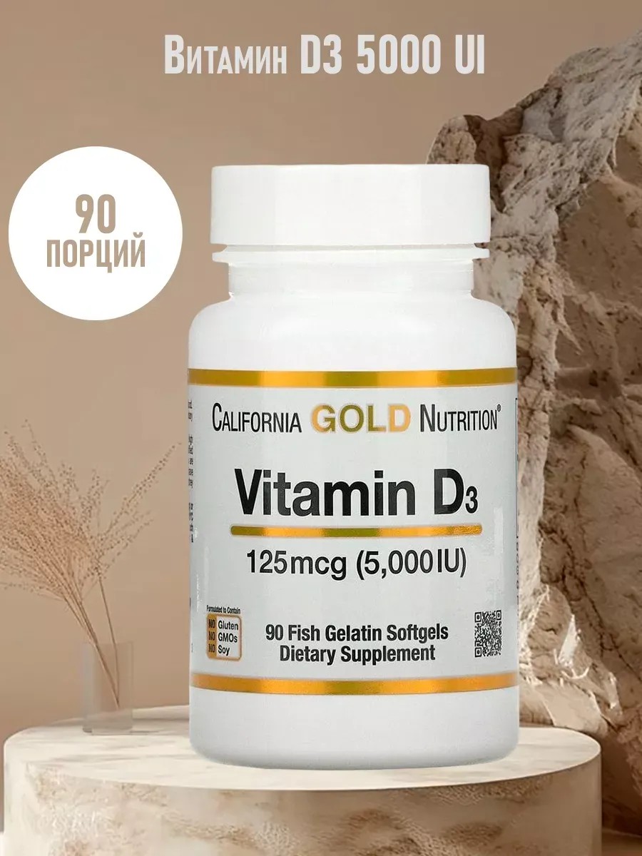 Витамин D3 5000 ME необходим для улучшения усвоения кальция, который отвечает за здоровье костей и зубов. Витамин D3 также поддерживает здоровье иммунитета и нервно-мышечной функции. Витамин D3, содержащийся в данном продукте, по форме аналогичен витамину D3, который выделяется в коже при воздействии солнечного света. С возрастом наш организм хуже поглощает этот важный питательный элемент. Vitamin D3 компании California Gold Nutrition содержит витамин D3 в виде холекальциферола из ланолина в желатиновых капсулах из рыб, произведенных в Калифорнии США.